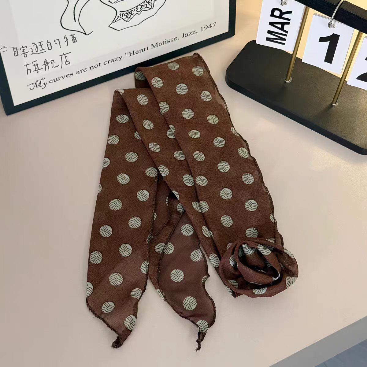 coffee bottom green wave point-silk scarf + rose