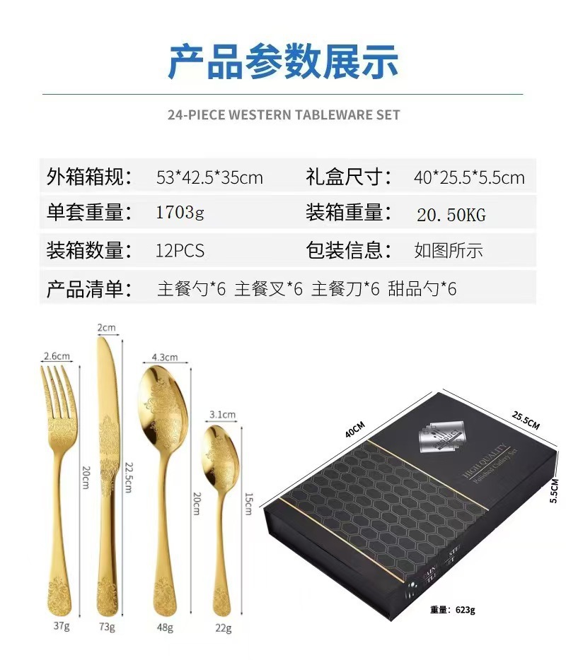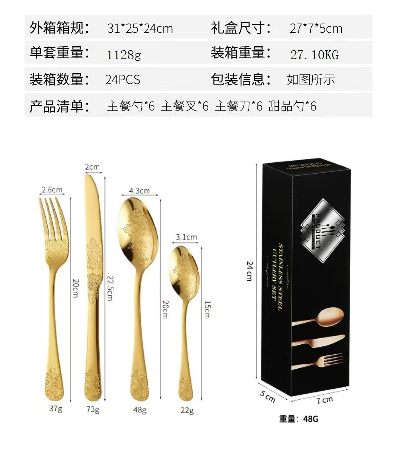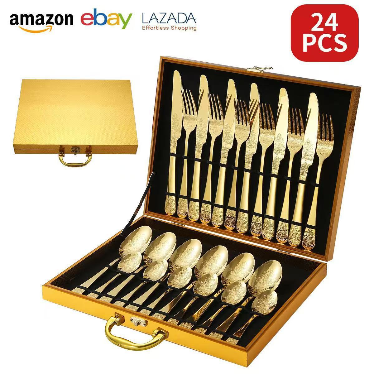 gold wooden box gold 24-piece set