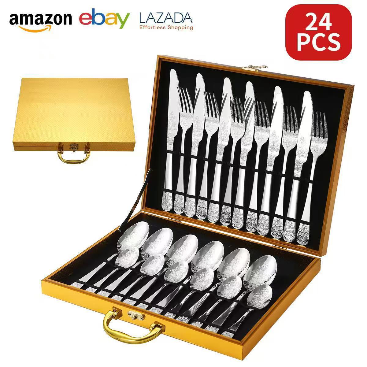 gold wooden box silver 24-piece set