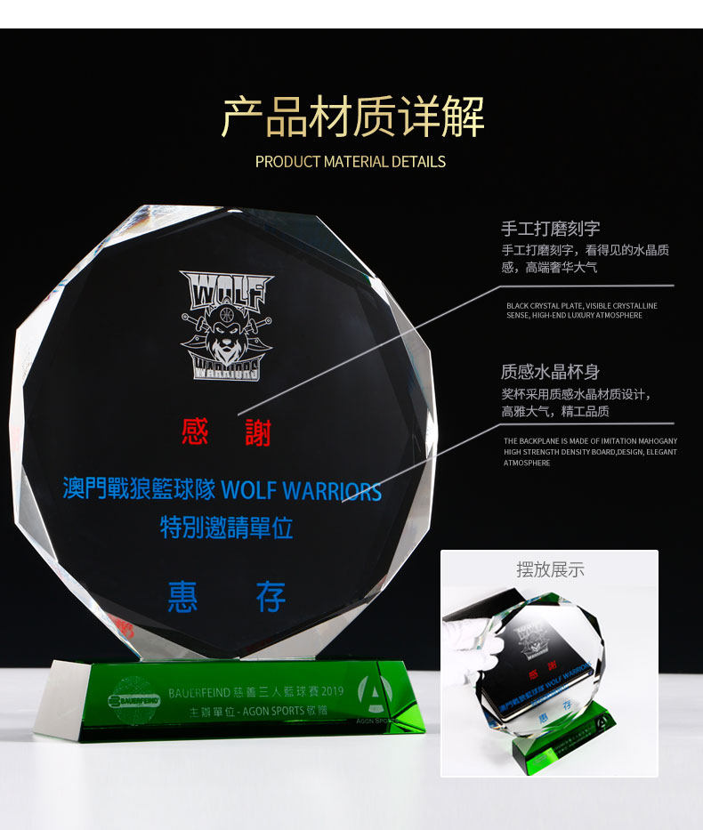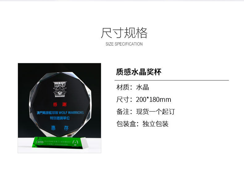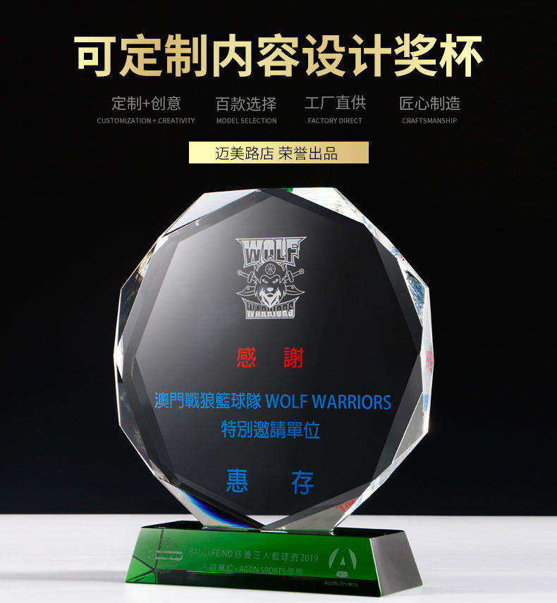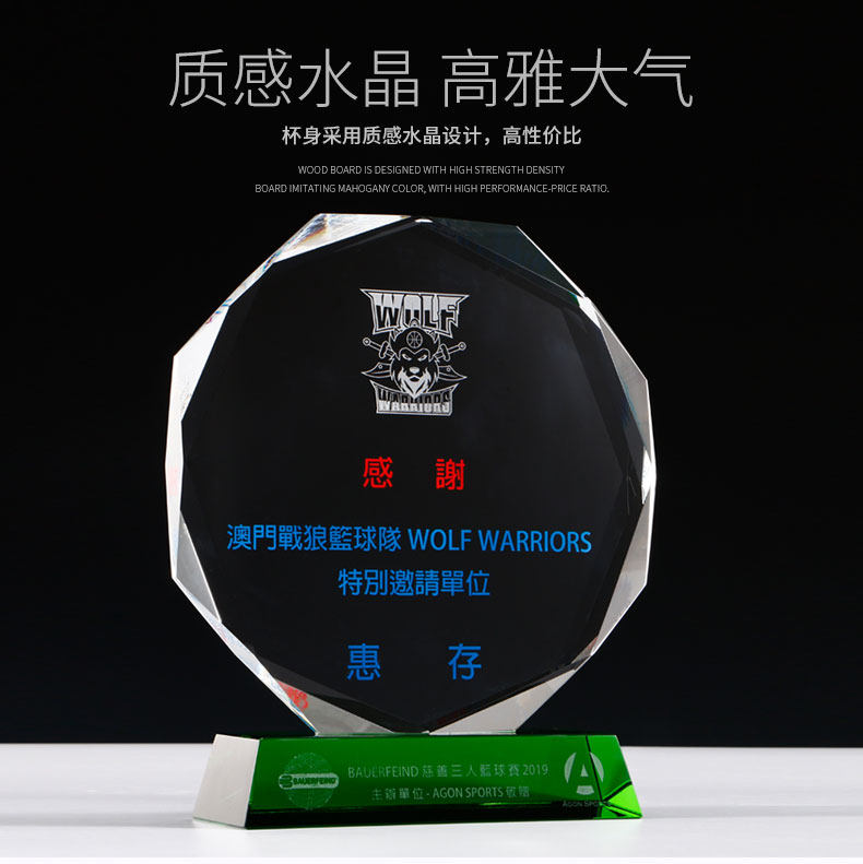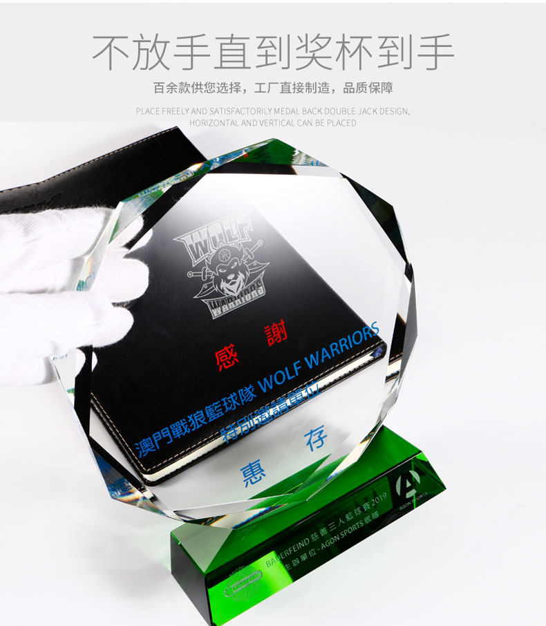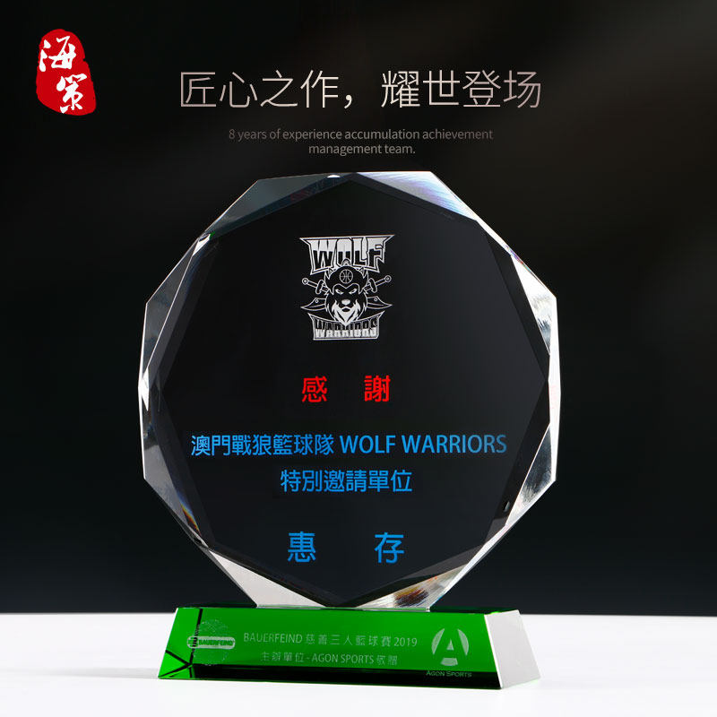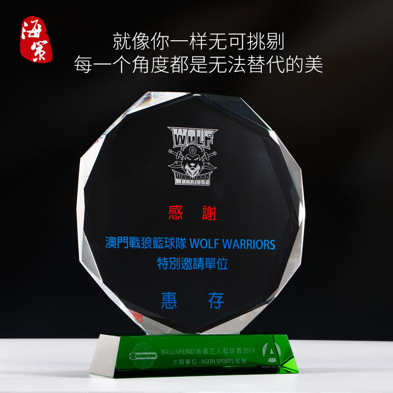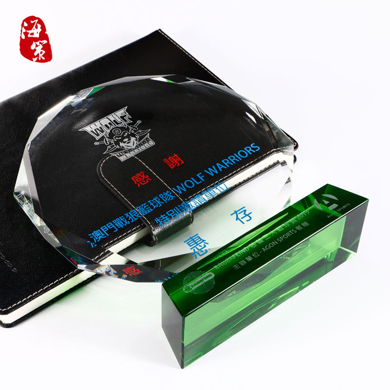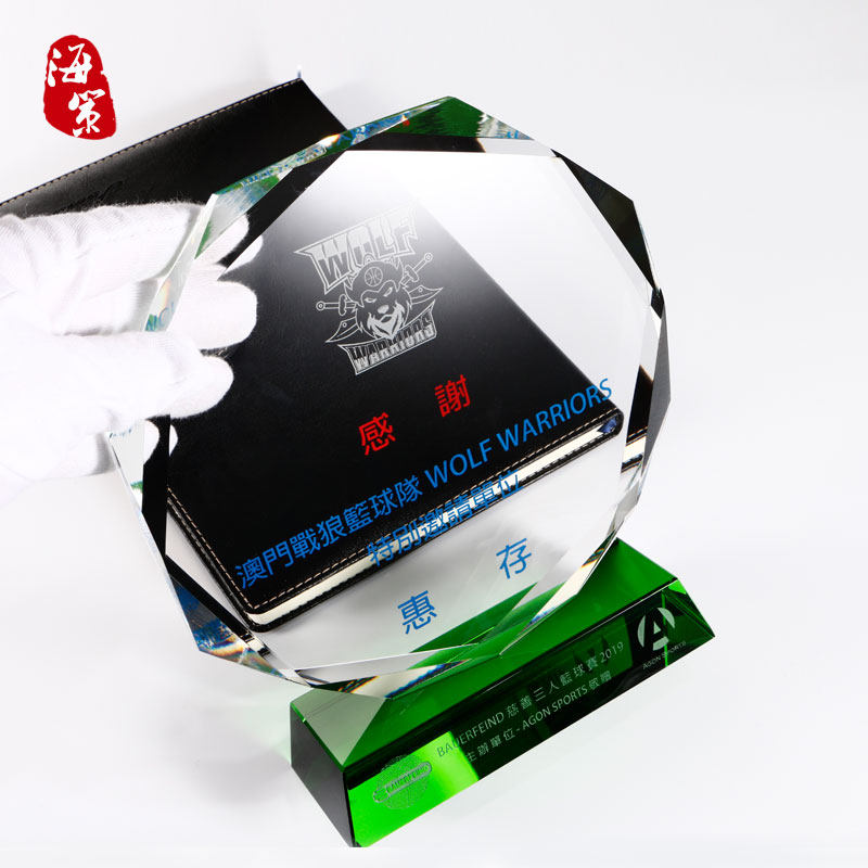 creative octagonal crystal trophy customized medal customized green crystal trophy lettering licensing authority agent joining