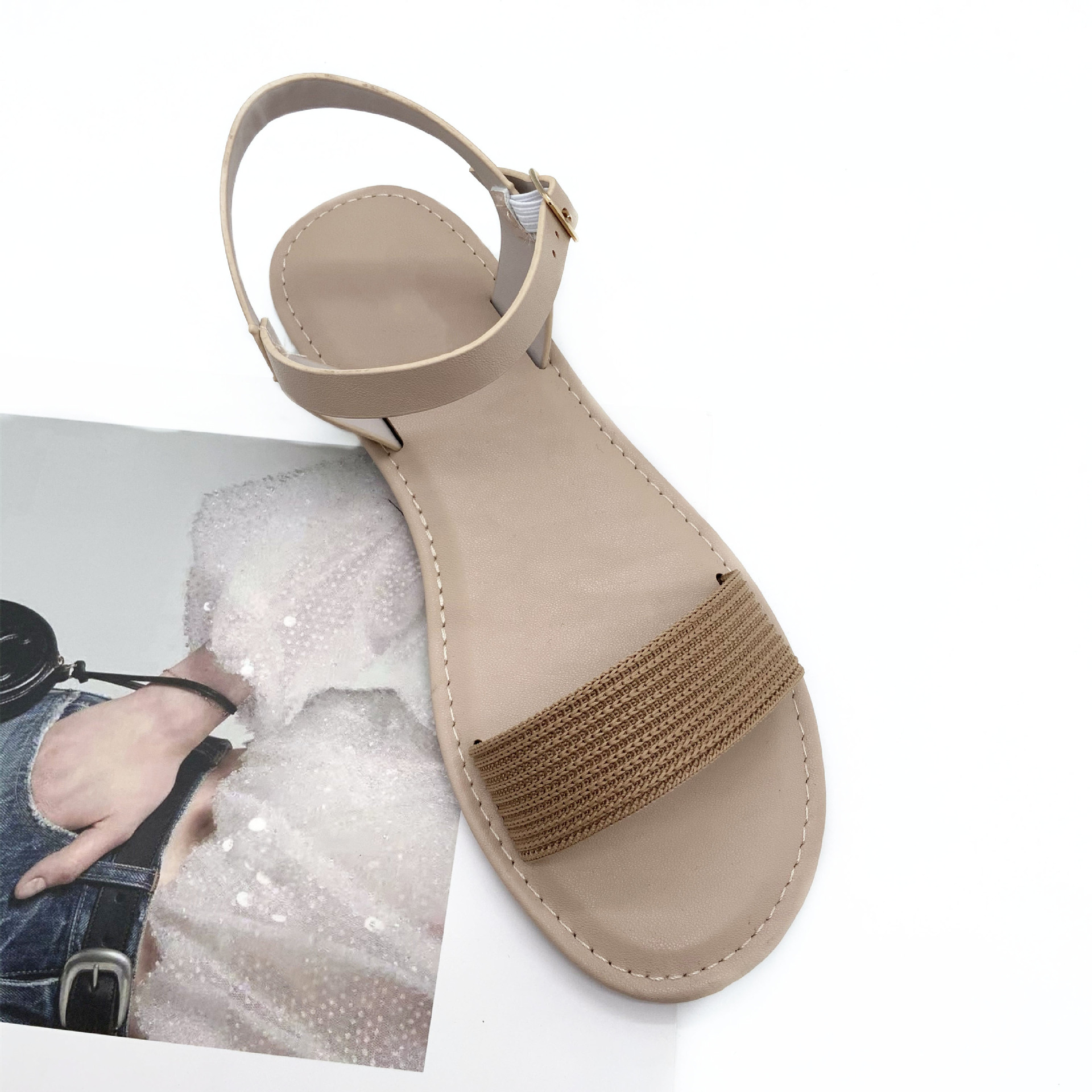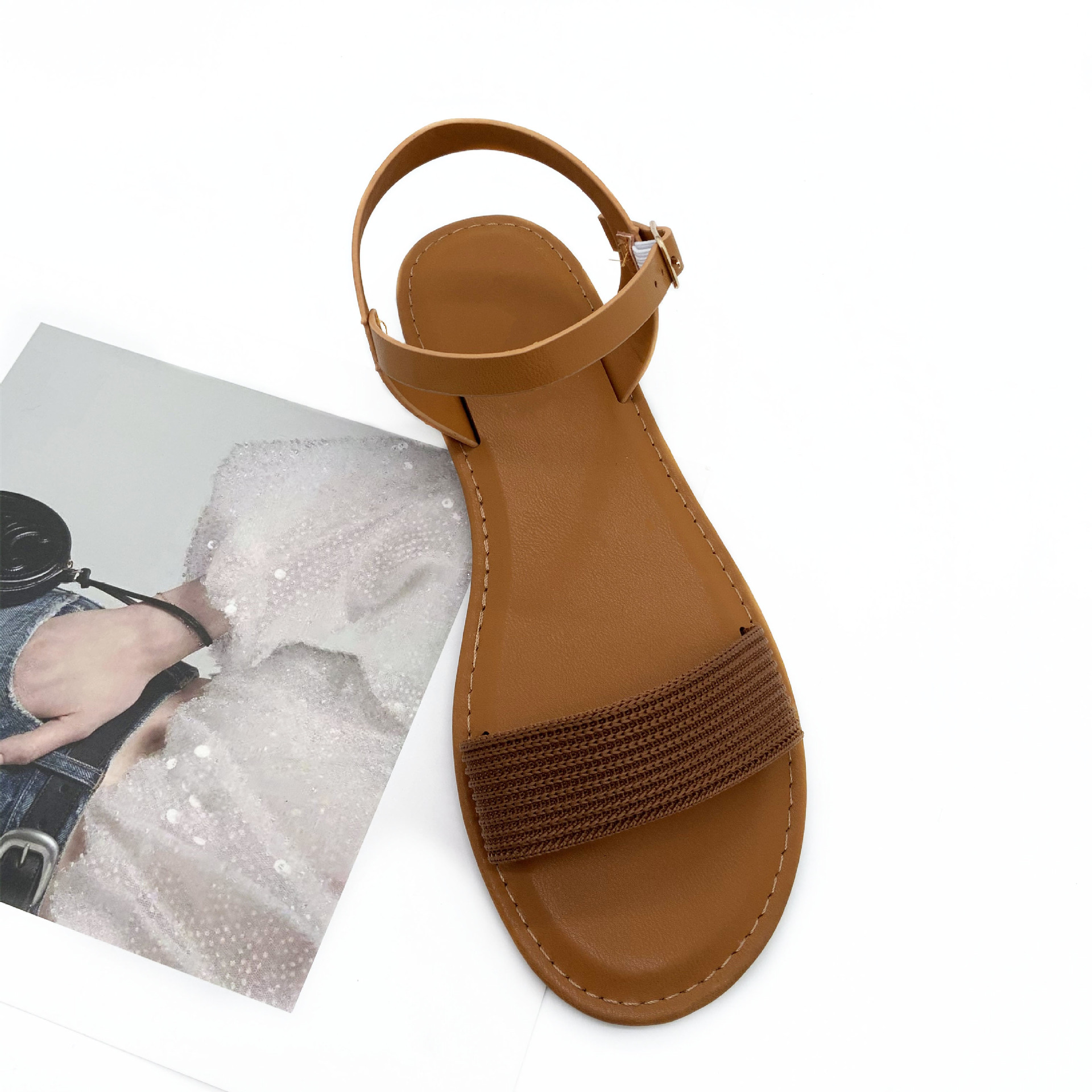 women's flyknit one-strap flat sandals, lightweight non-slip, essential for spring outing