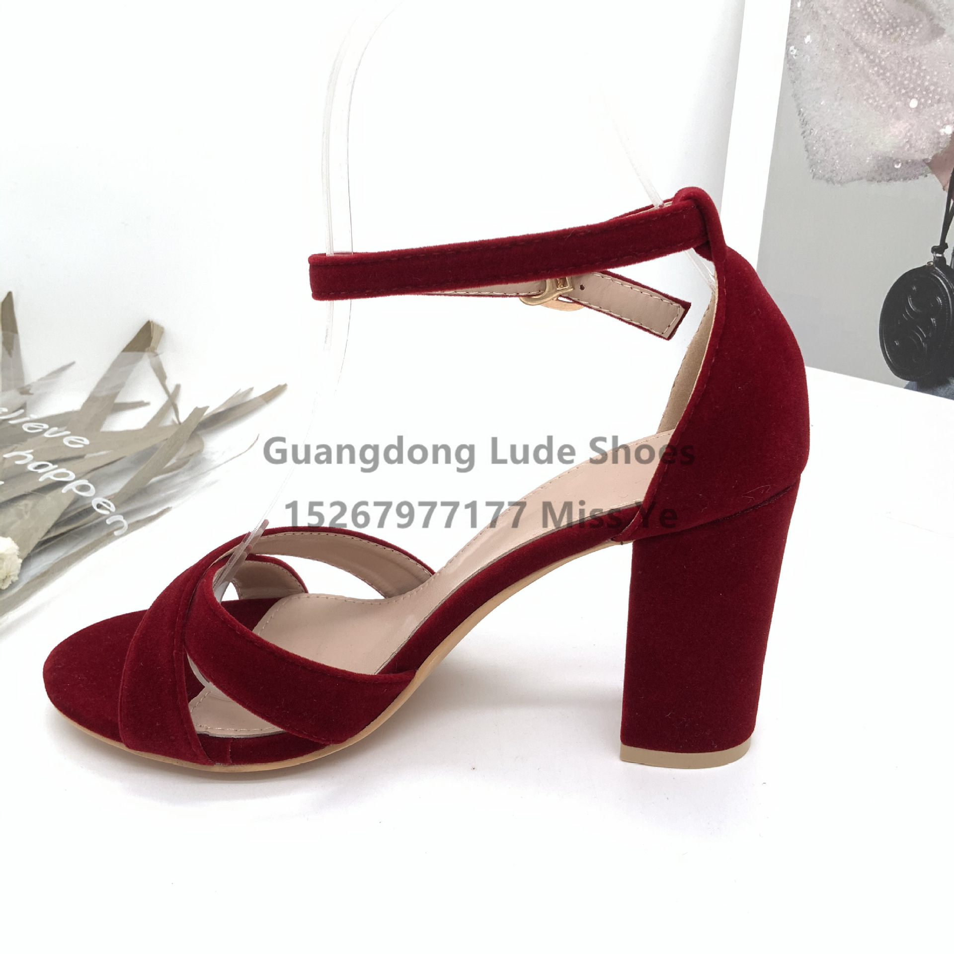 professional flannel chunky heel high heel sandals low-cut open toe casual women's shoes