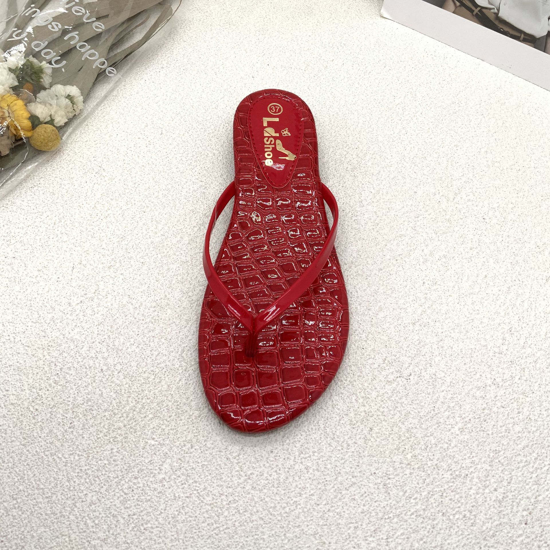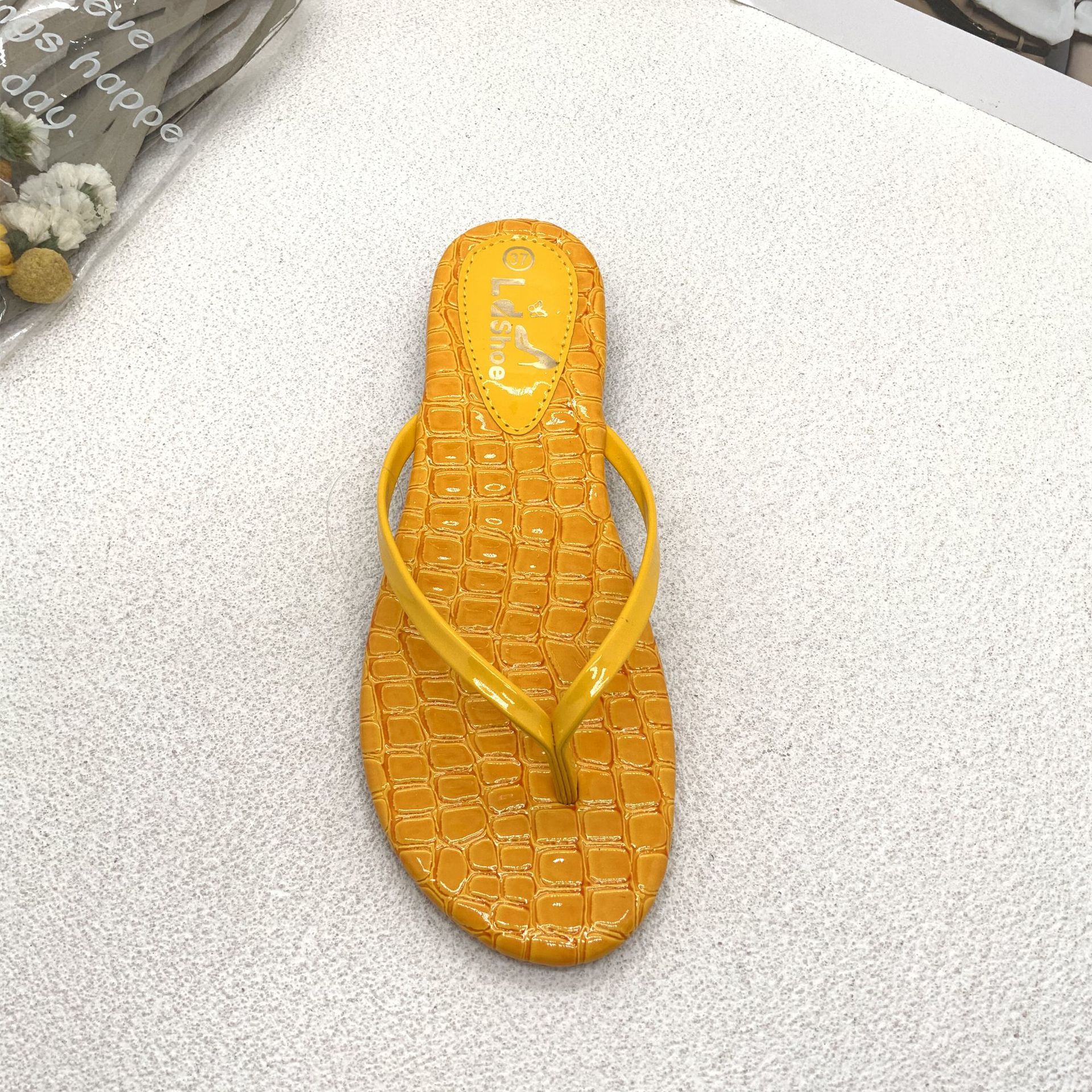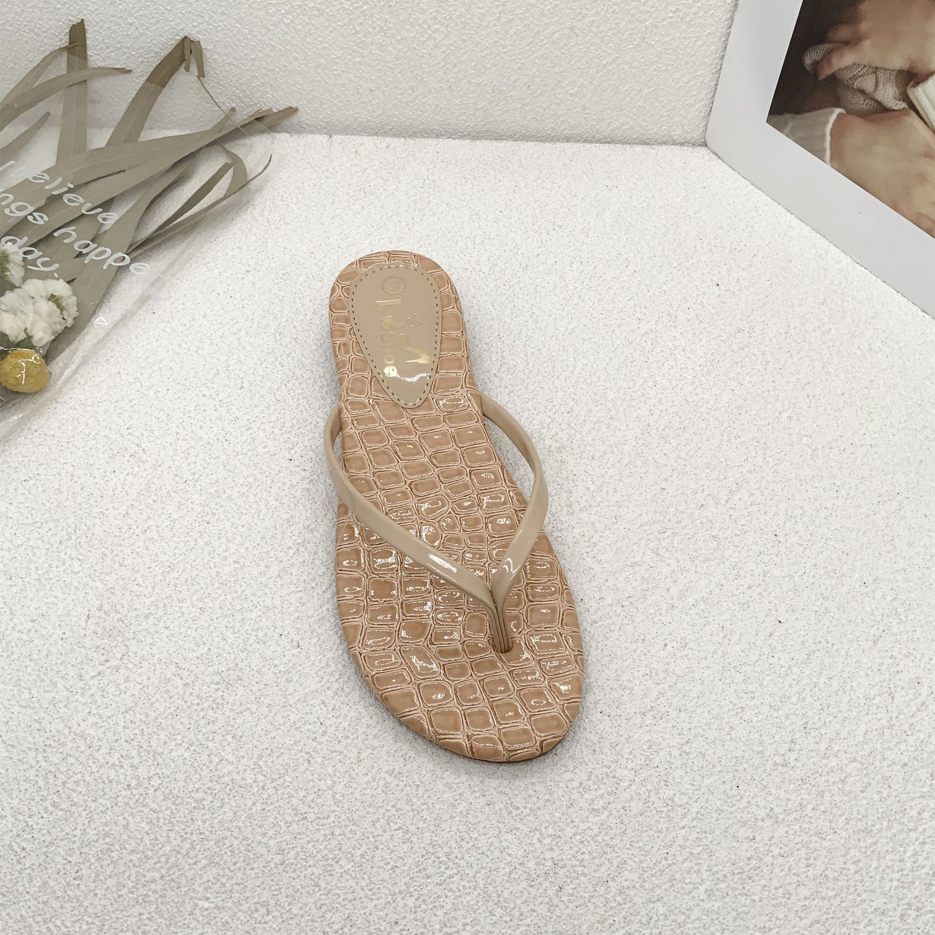 beach glossy stone pattern flip flops women's flat non-slip outdoor slippers for travel