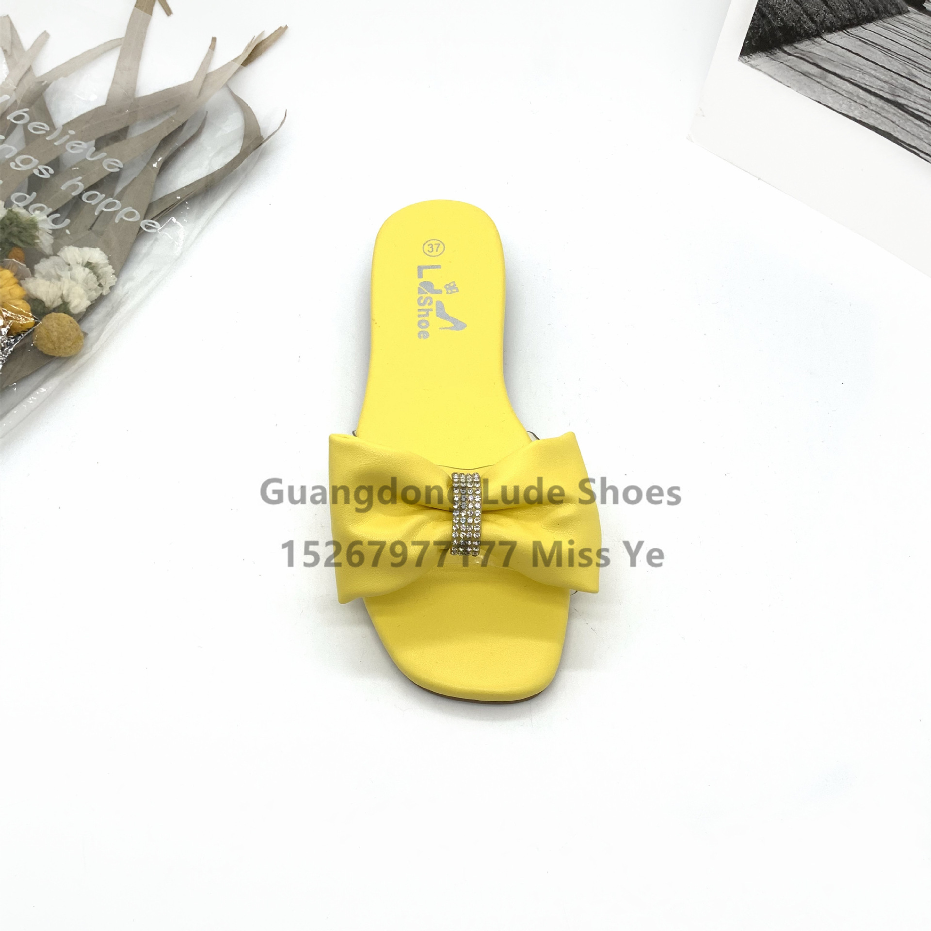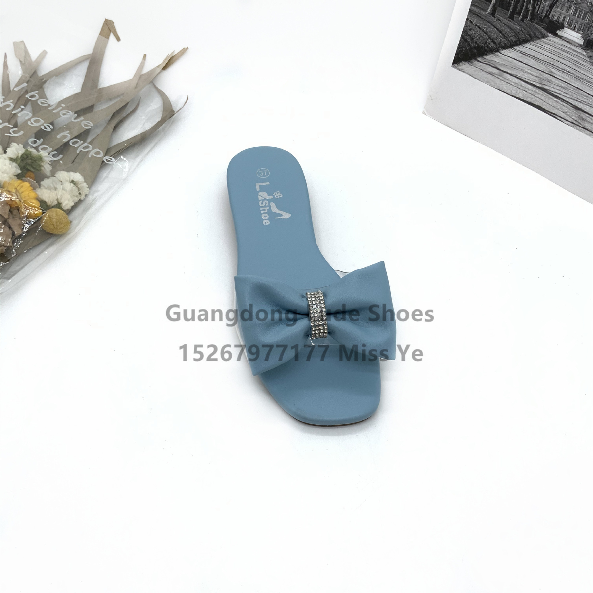 all-match big bow rhinestone slippers flat non-slip shopping for work two-way wear sandals