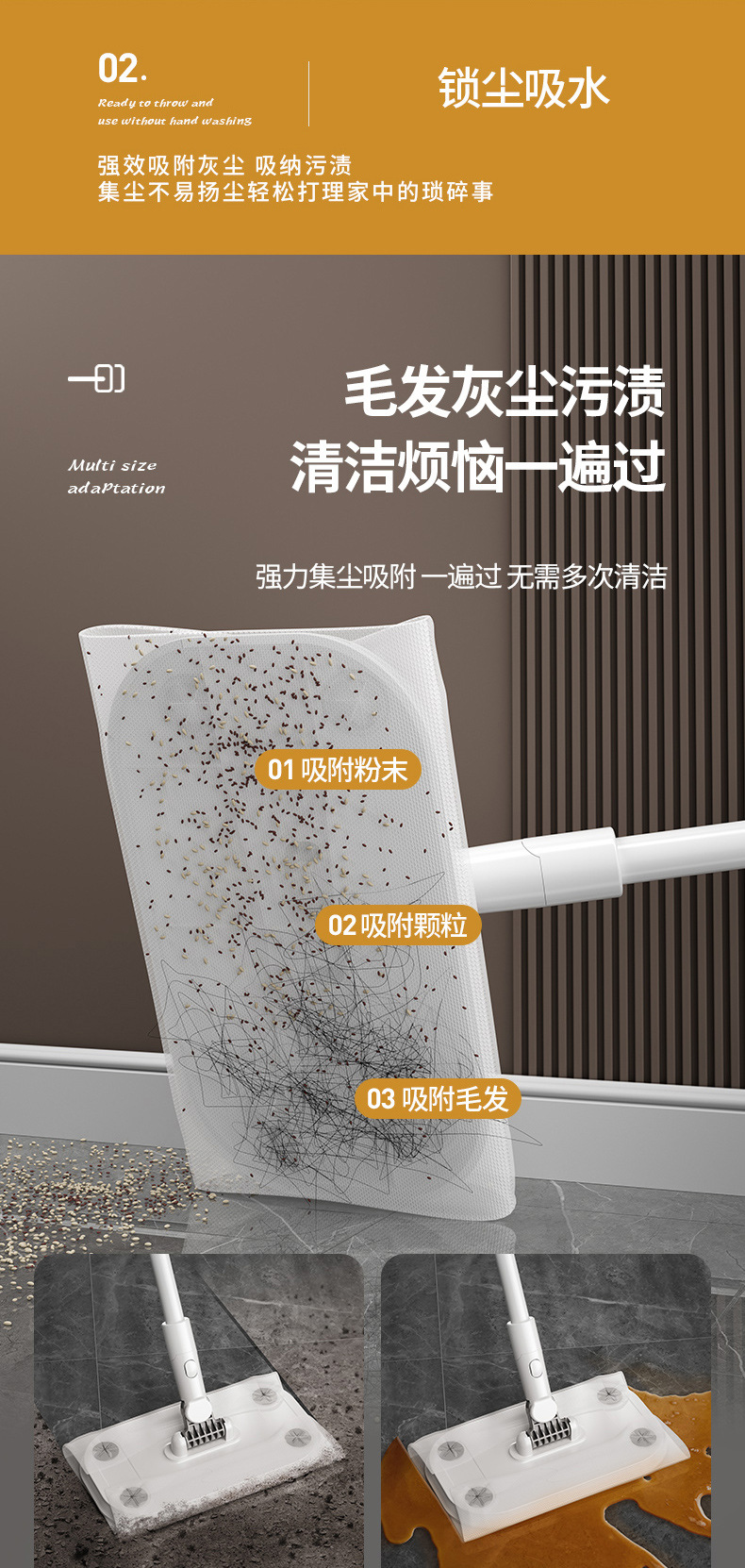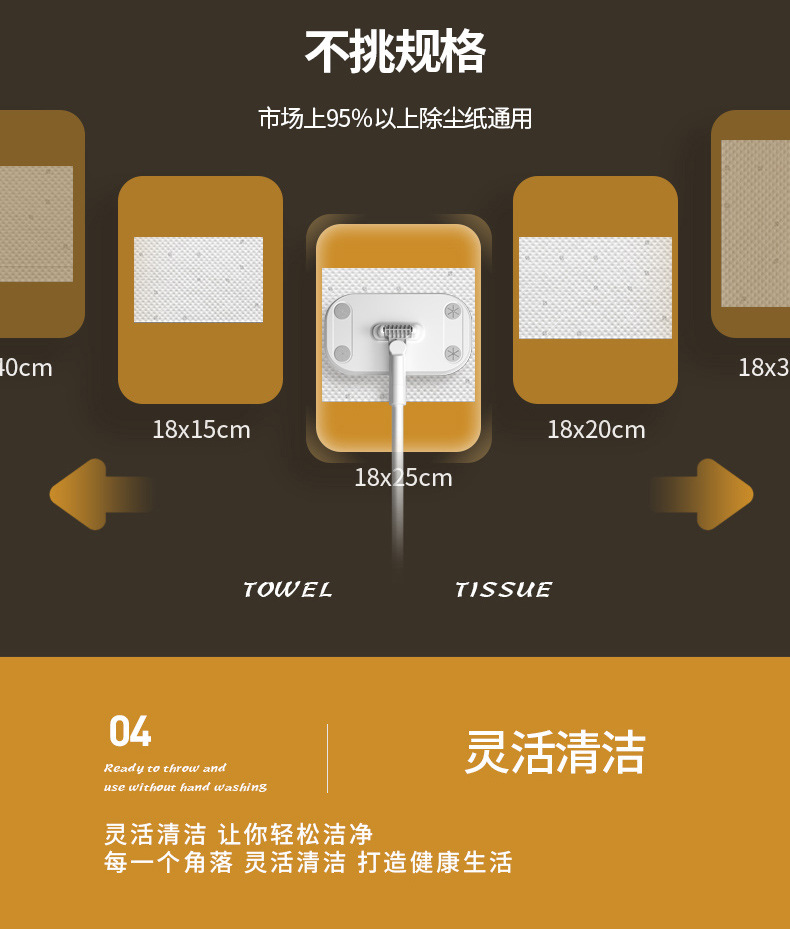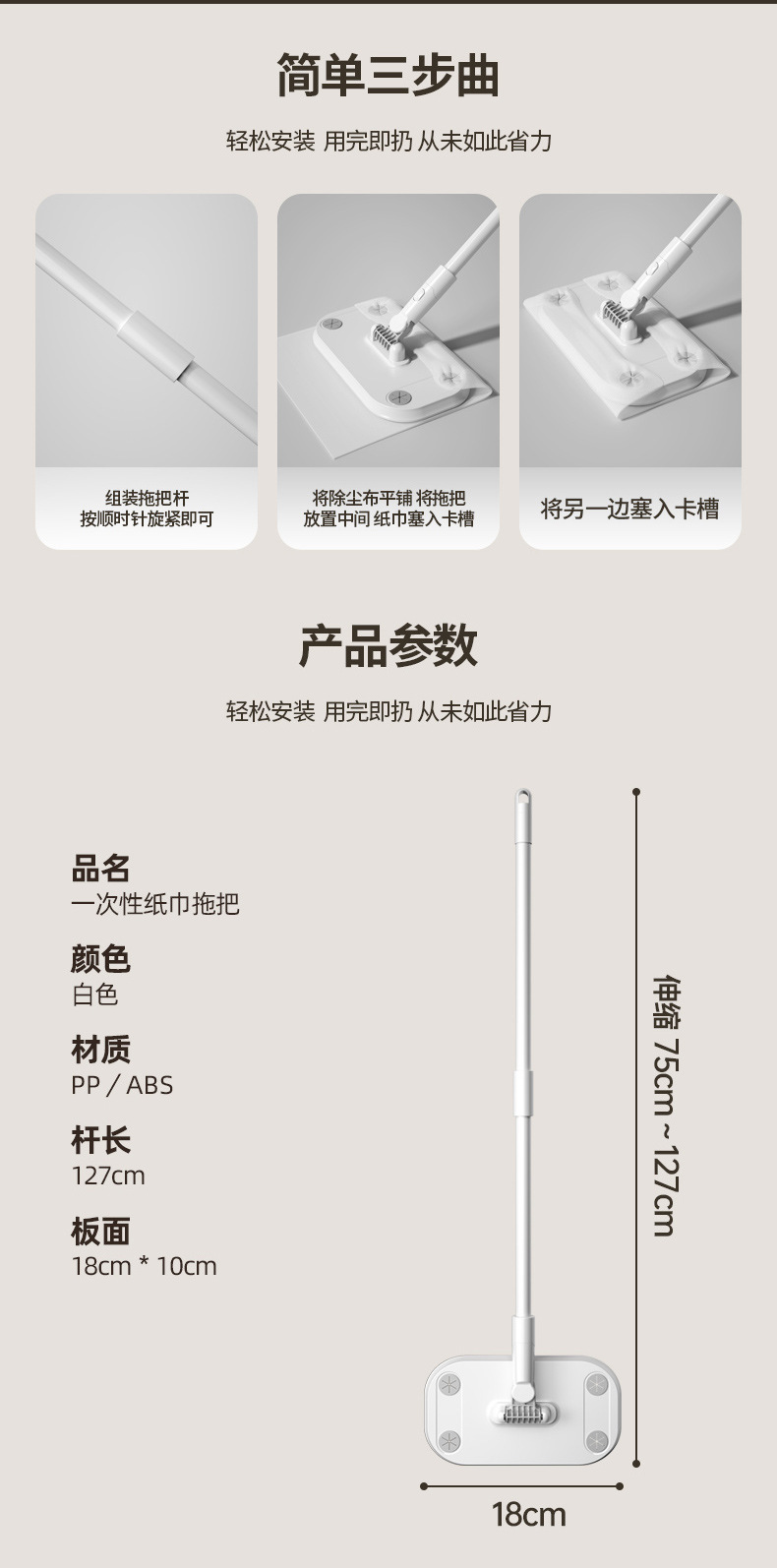| white retractable mop contains a pack of dry tissue wipes | CN¥ 16.3 | 9999745 set available |