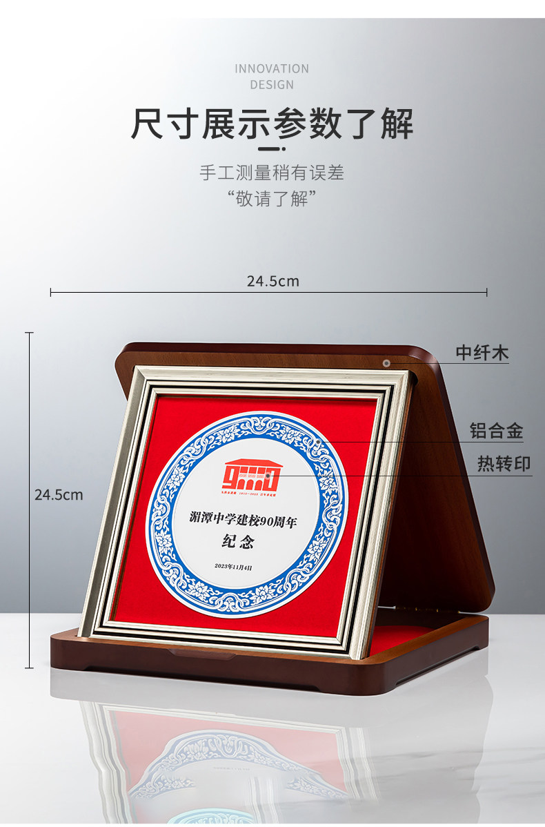 foldable metal medal silver 24.5 * 24.5cm
