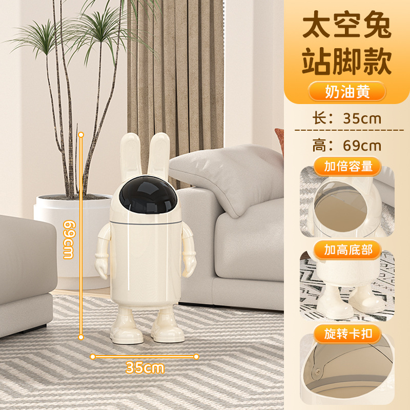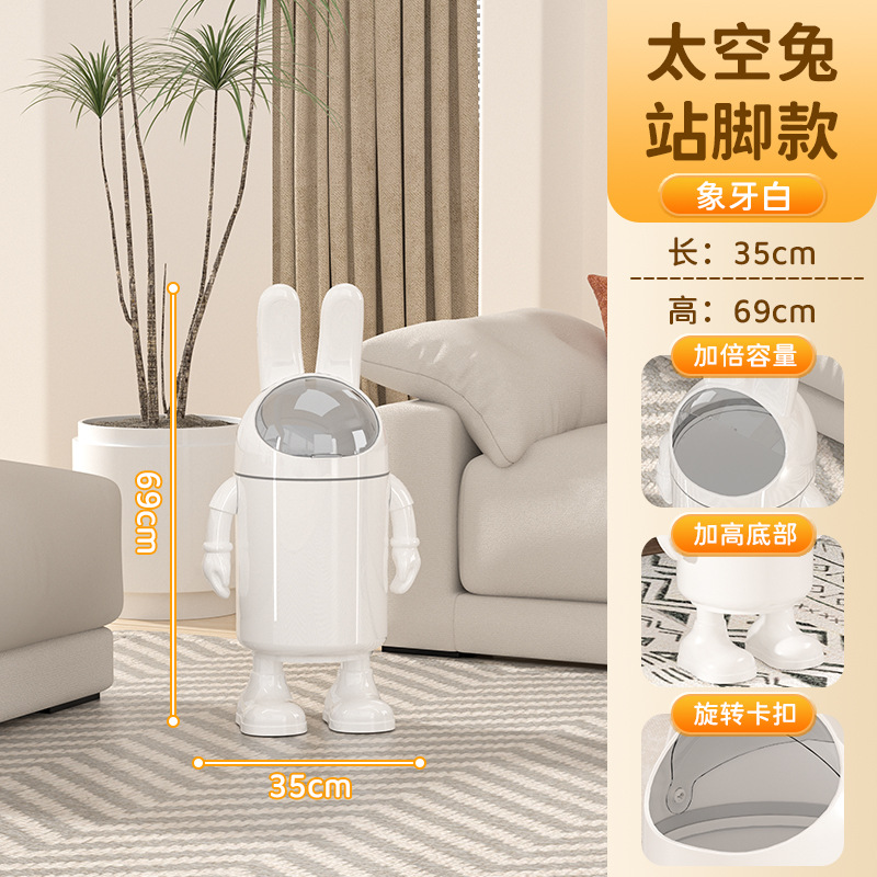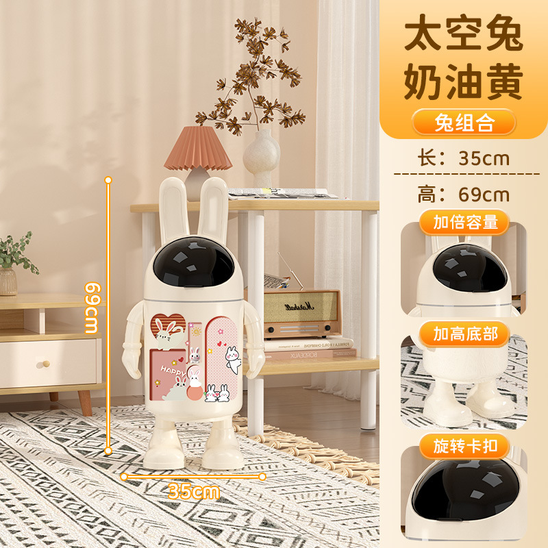 trending cartoon space rabbit trash can office bedroom with lid anti-odor trash can kitchen room trash can