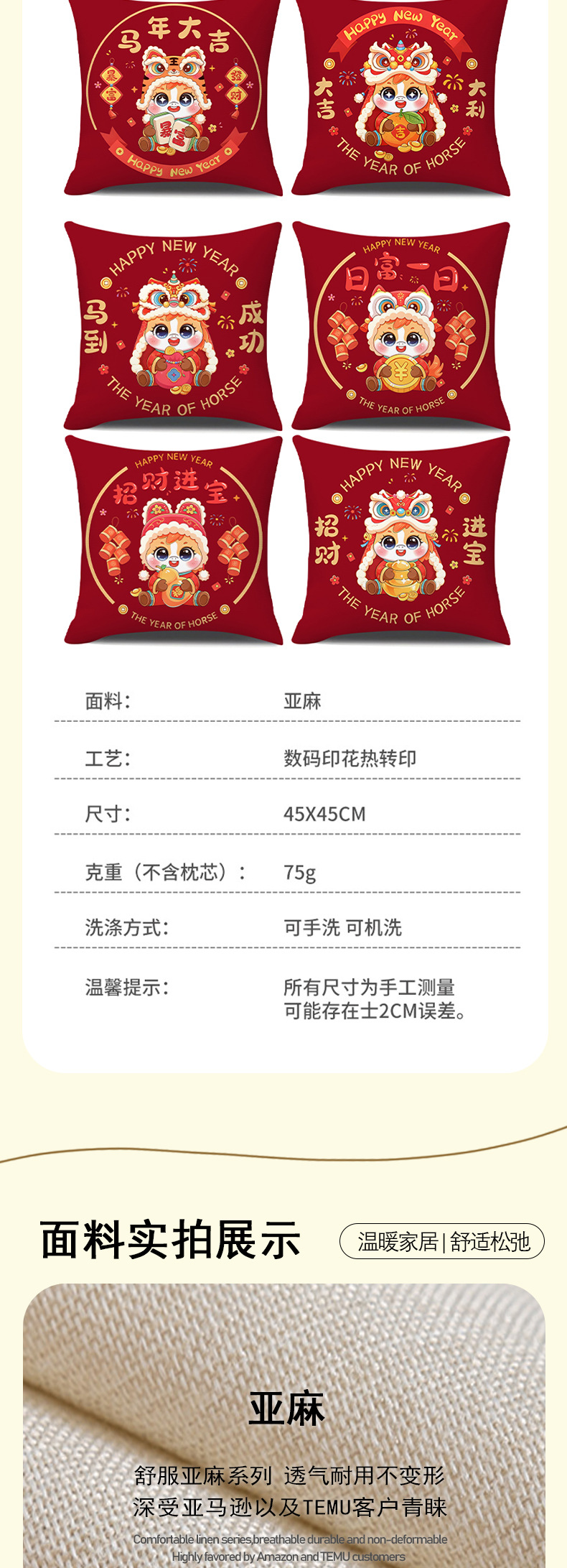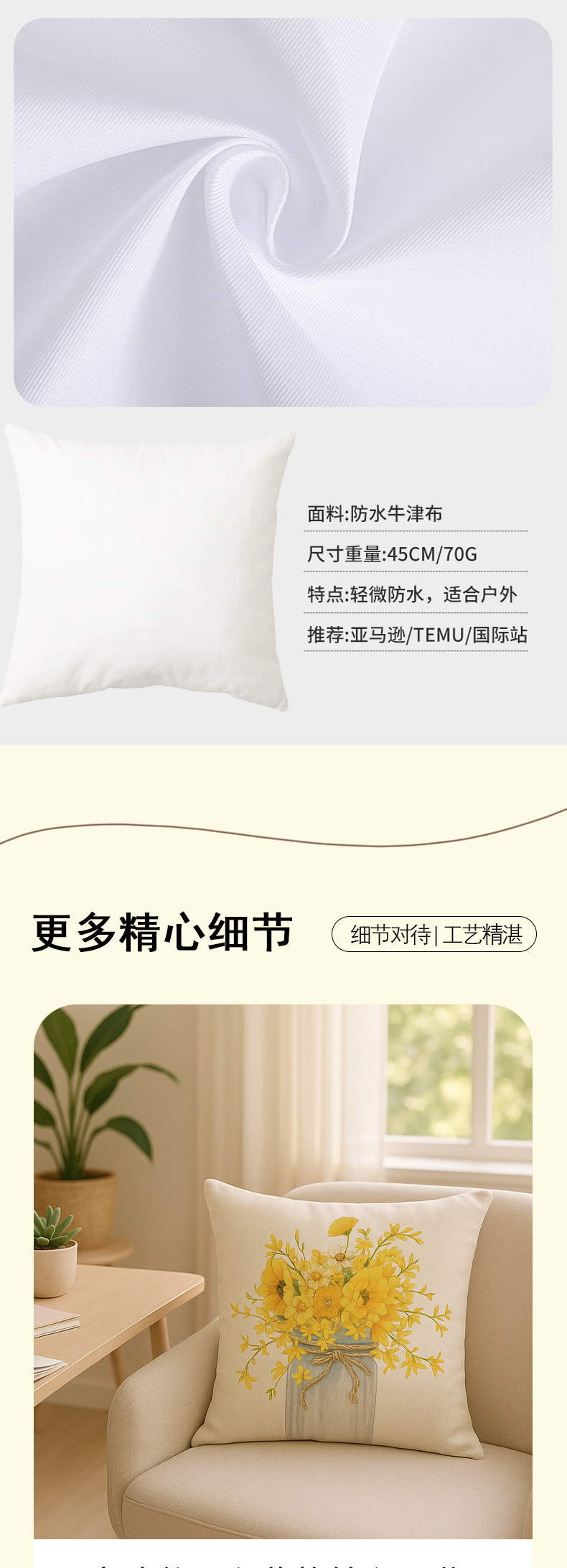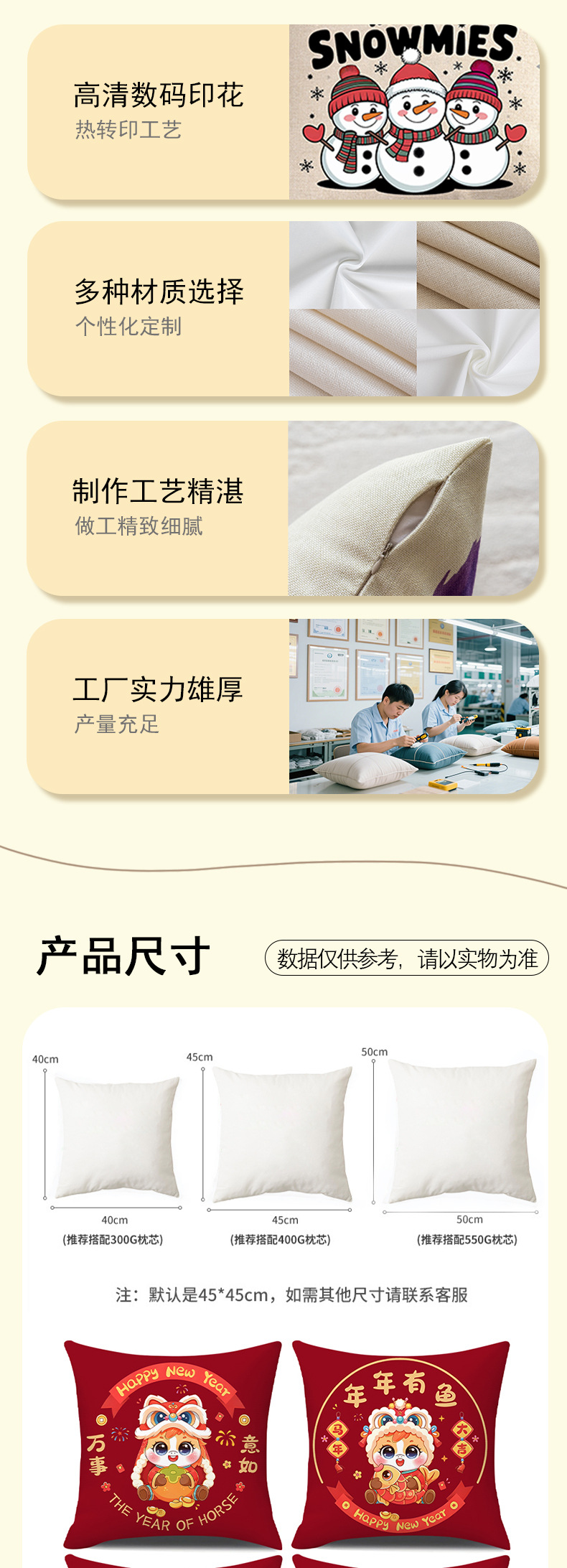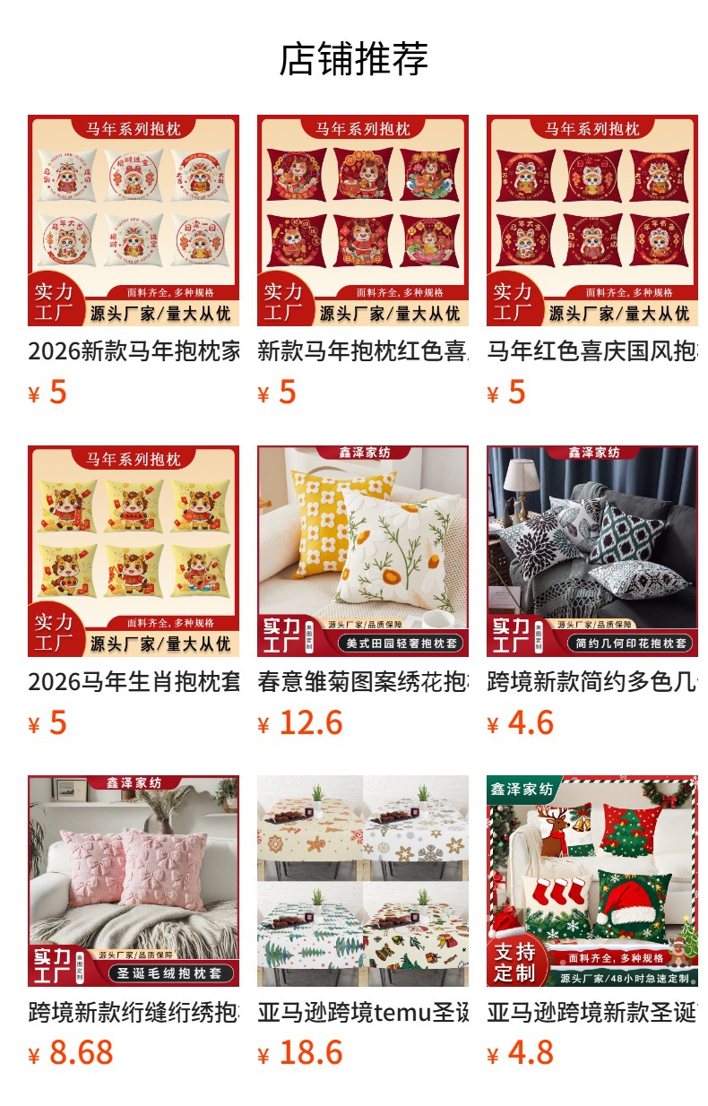 | 50 * 50cm (pillowcase + pillow core) | CN¥ 13.0 | 10000 piece available |