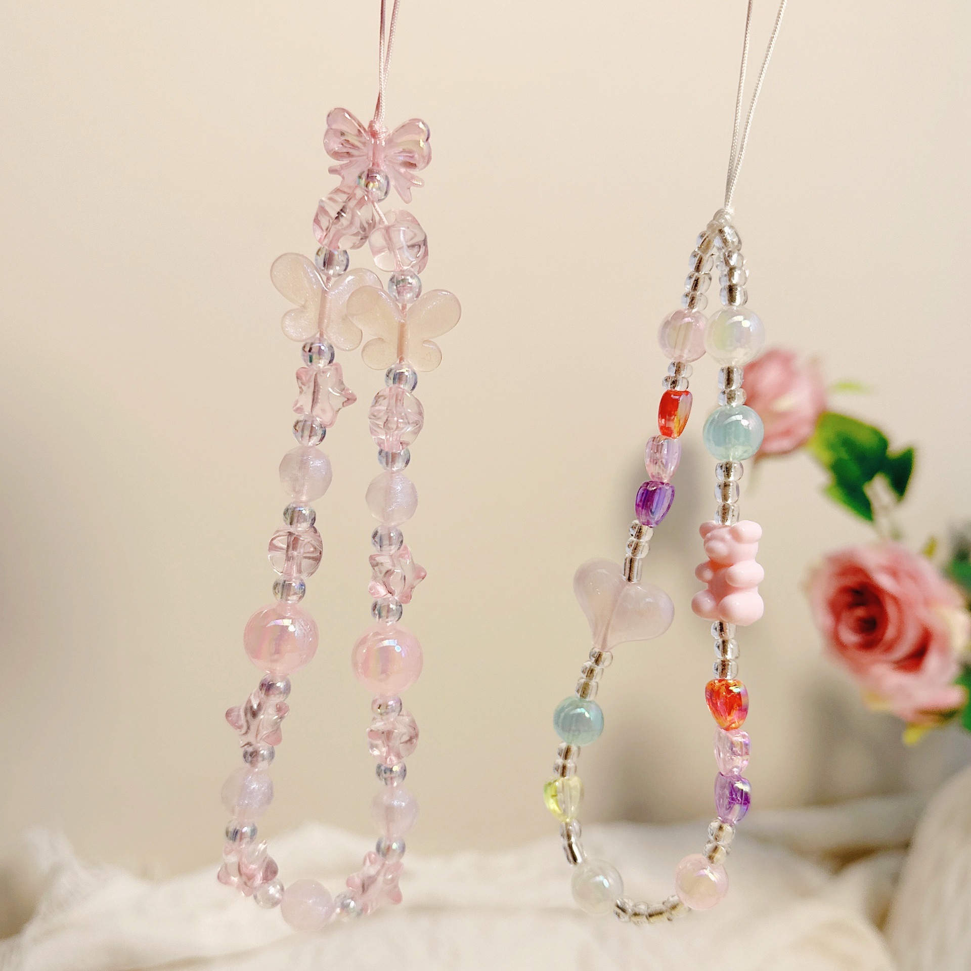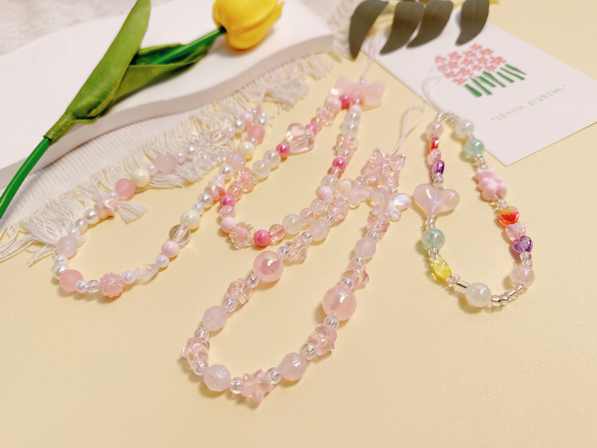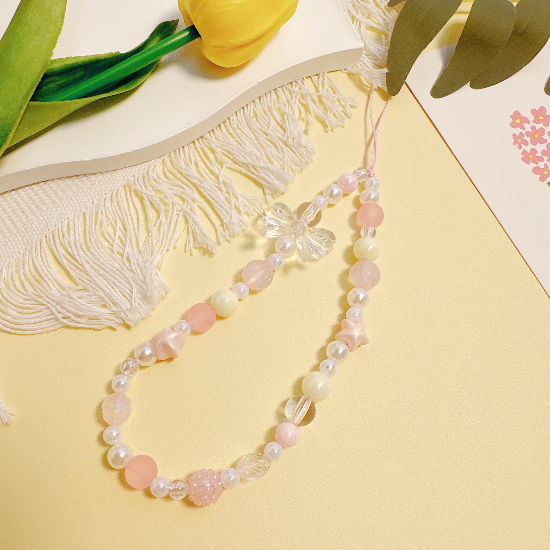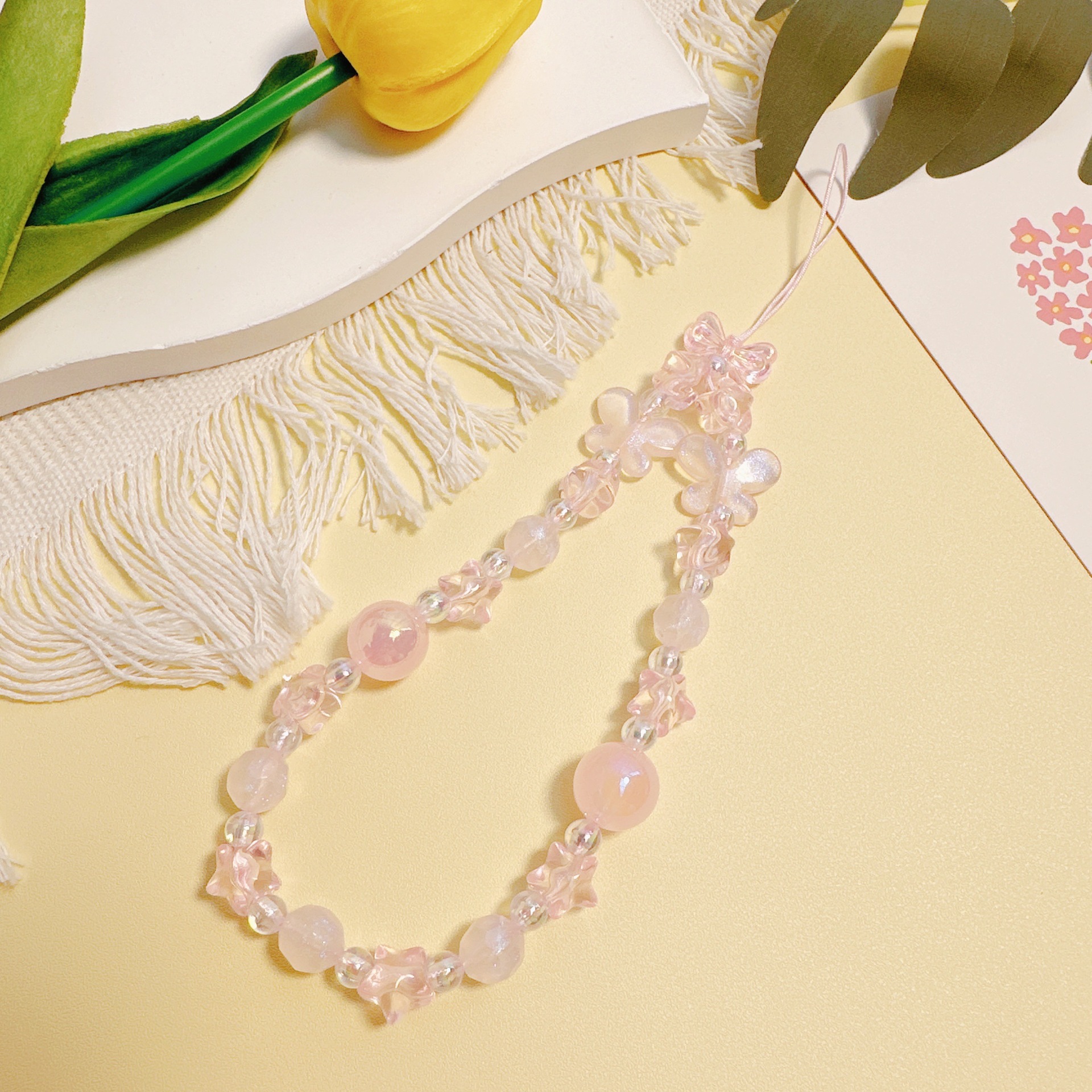 pink jelly bead fat five-star lanyard
