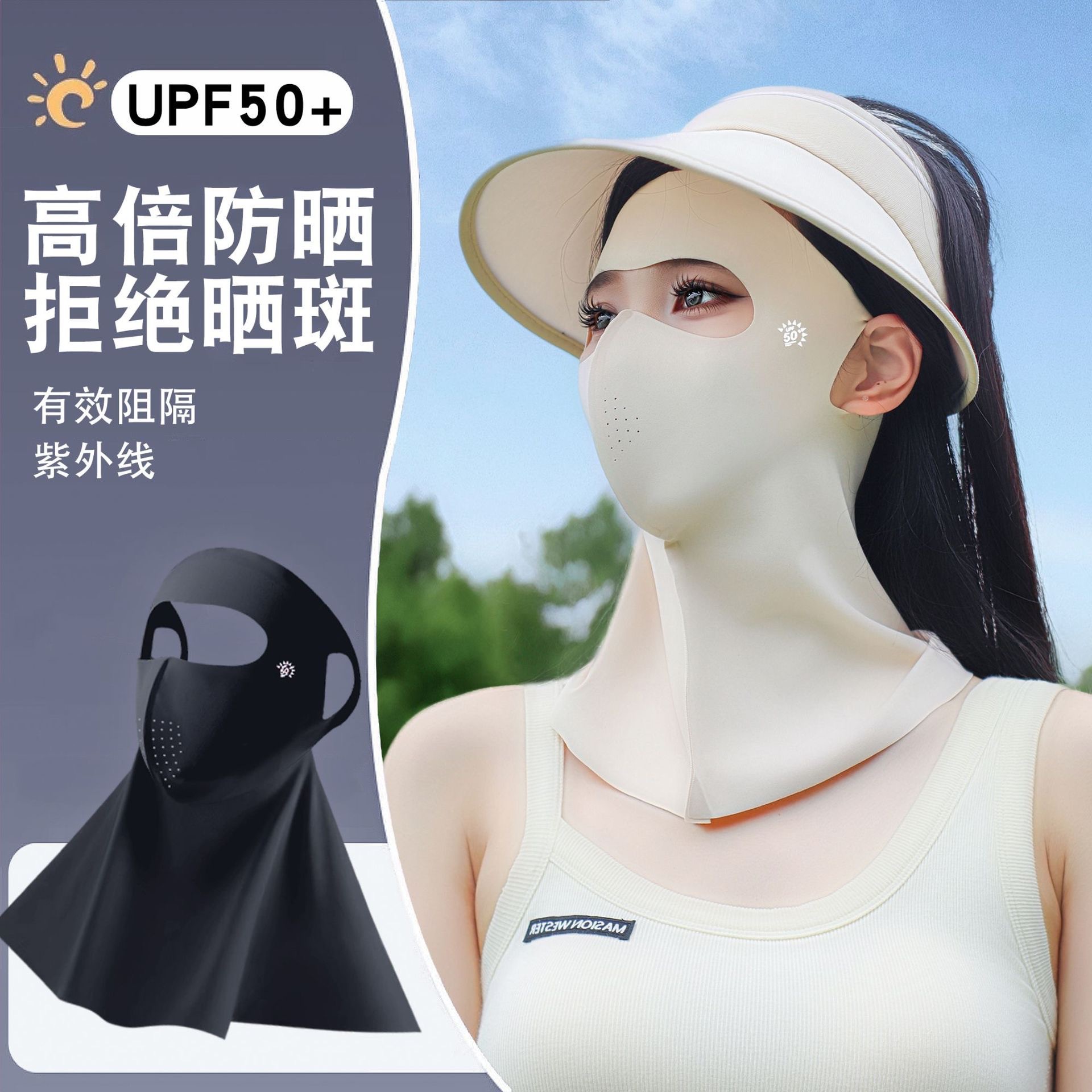 neck protection sun mask (black + beige)