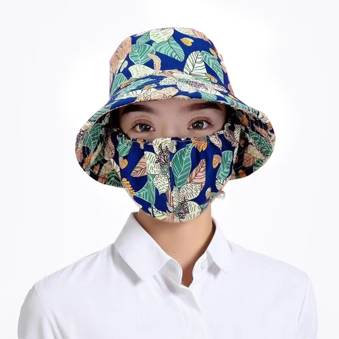 blue peng big flower tea picking hat
