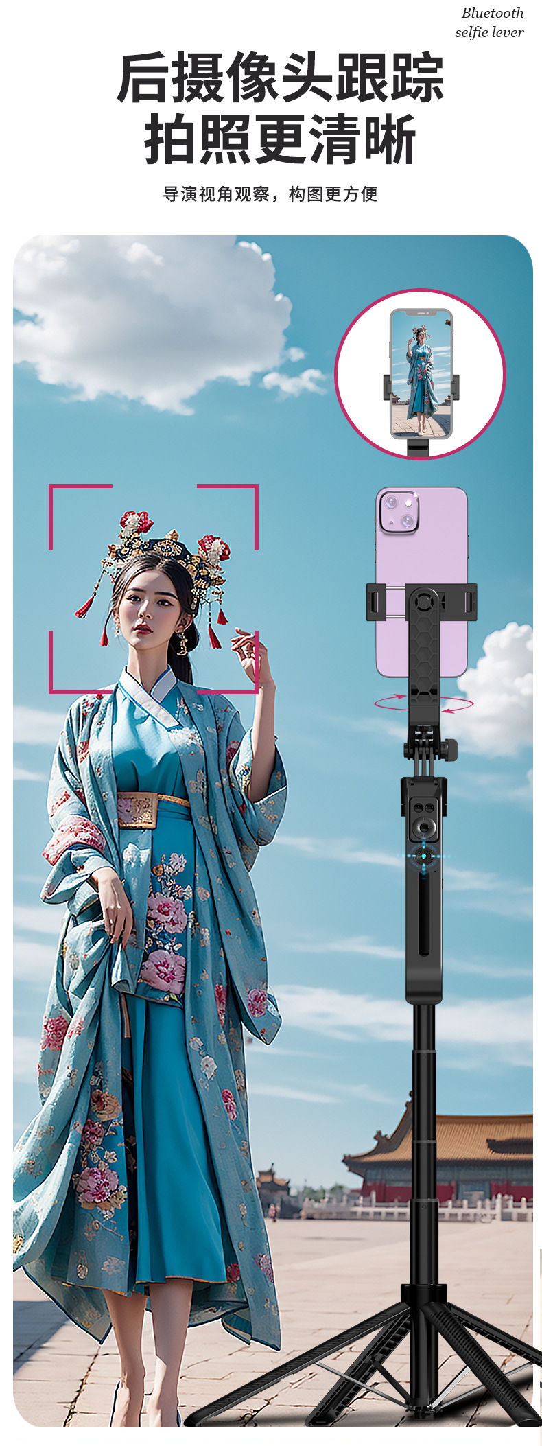 new c12 automatic face and camera head anti-shake artifact selfie stick 1.8 m 360 ° integrated