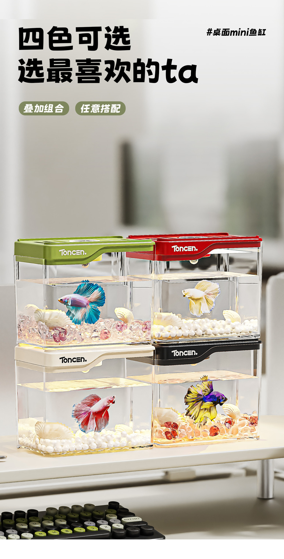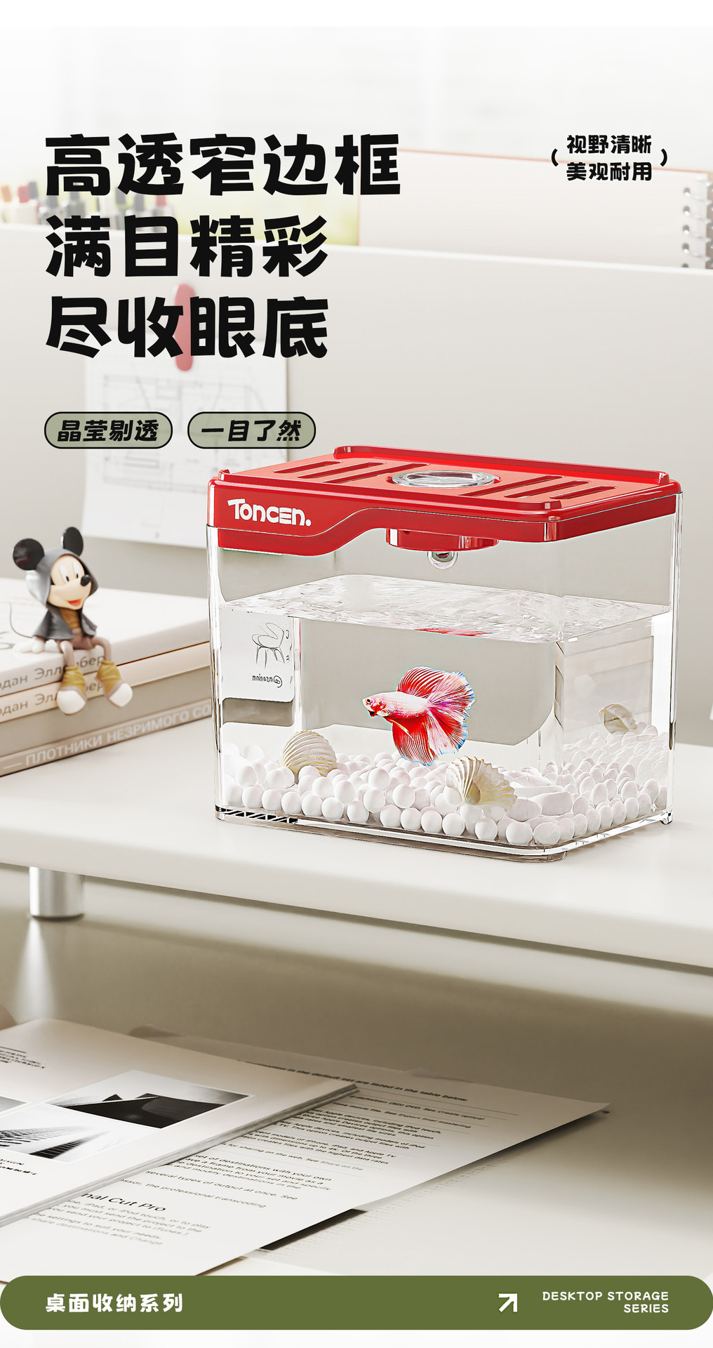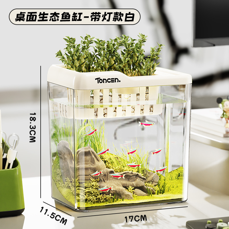 wo fish tank for douyu living room 2025 new super white aquarium desktop household tea tray creative fish globe
