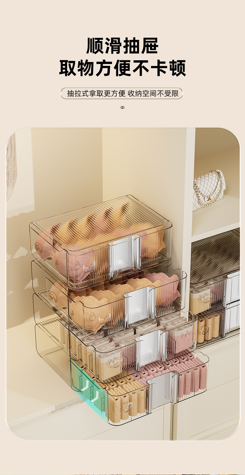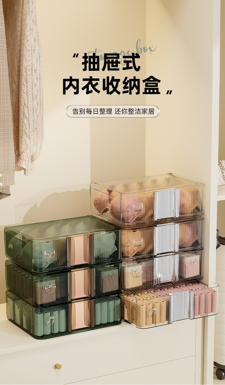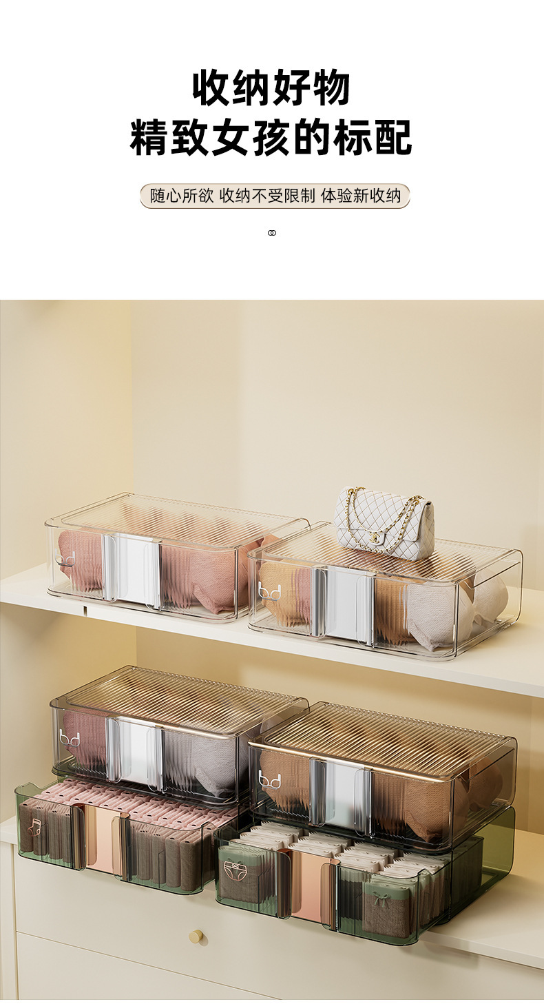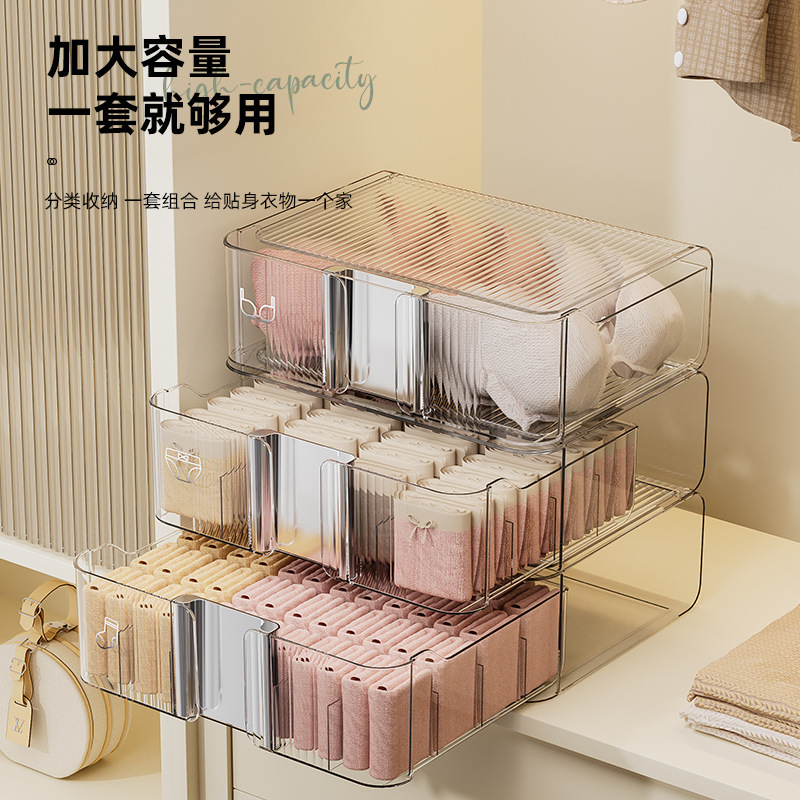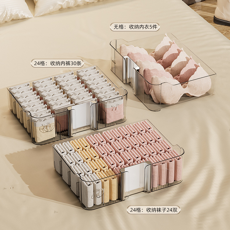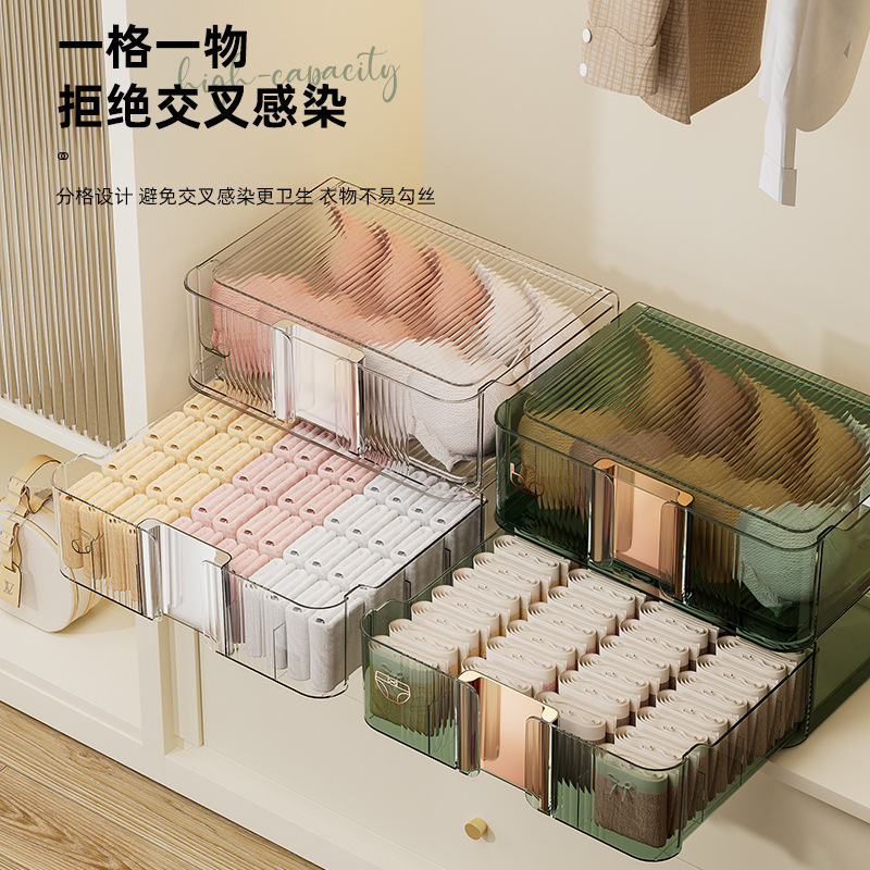 underwear underwear storage box socks underwear partitioned and transparent household storage box wardrobe drawer three-in-one box