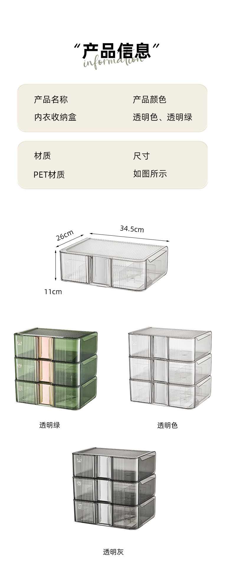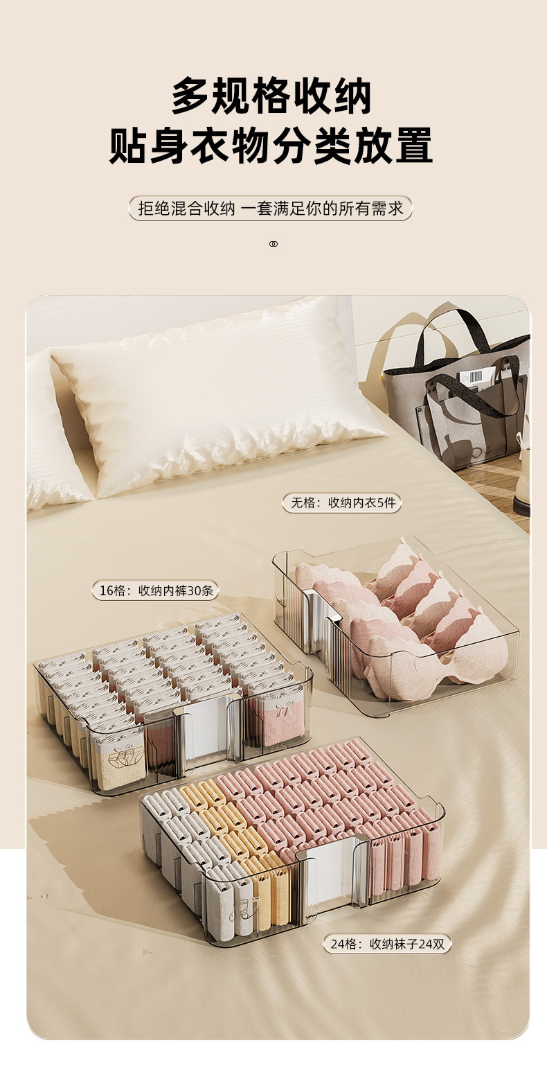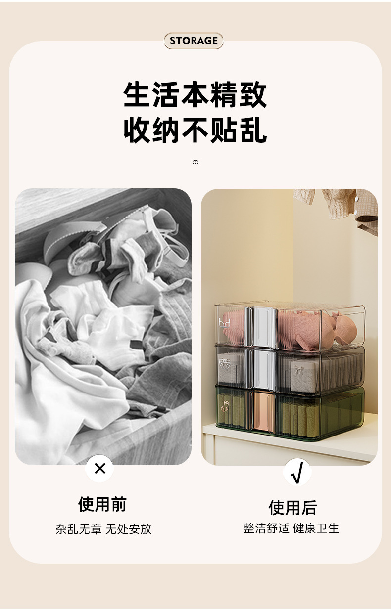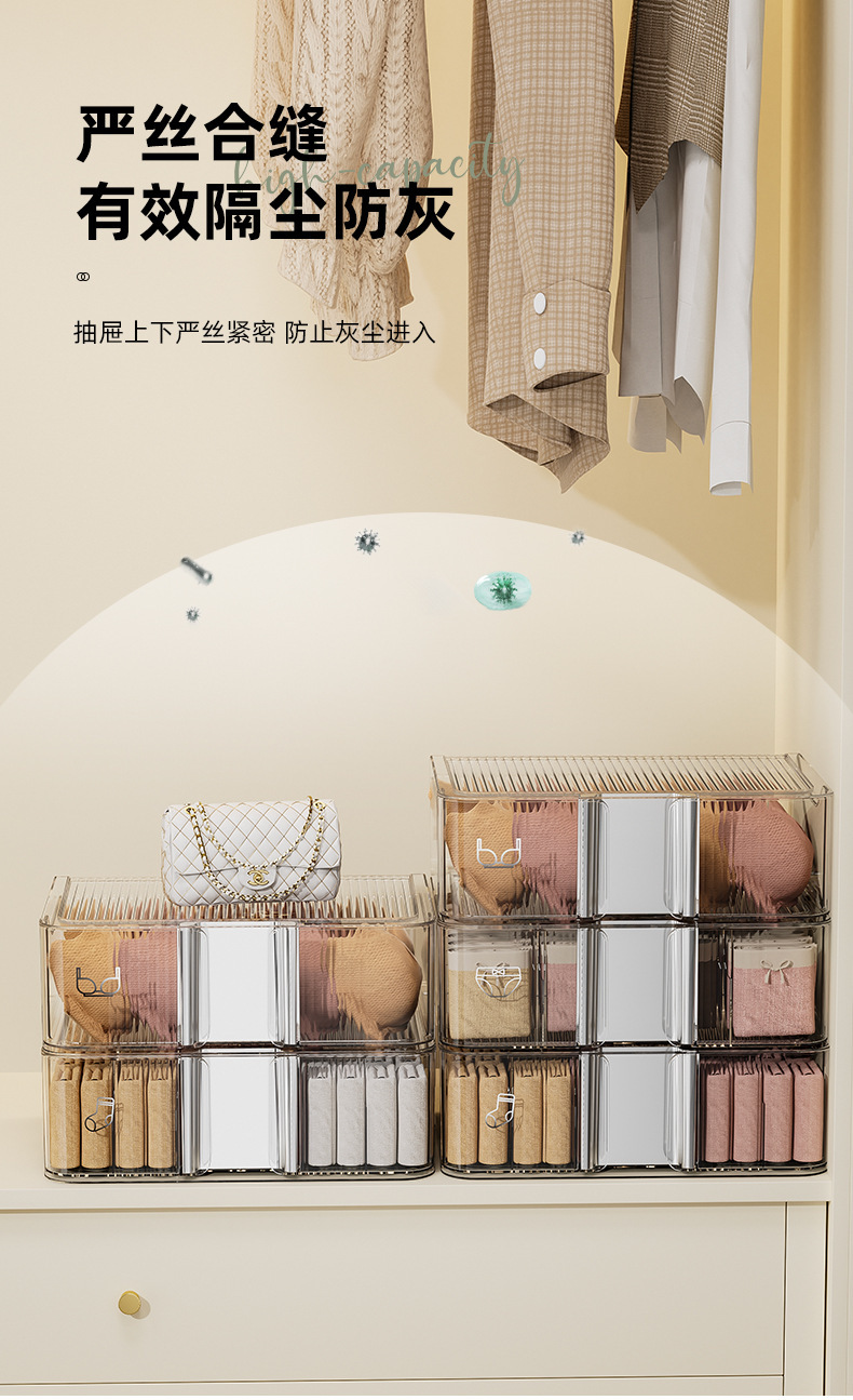 underwear underwear storage box socks underwear partitioned and transparent household storage box wardrobe drawer three-in-one box