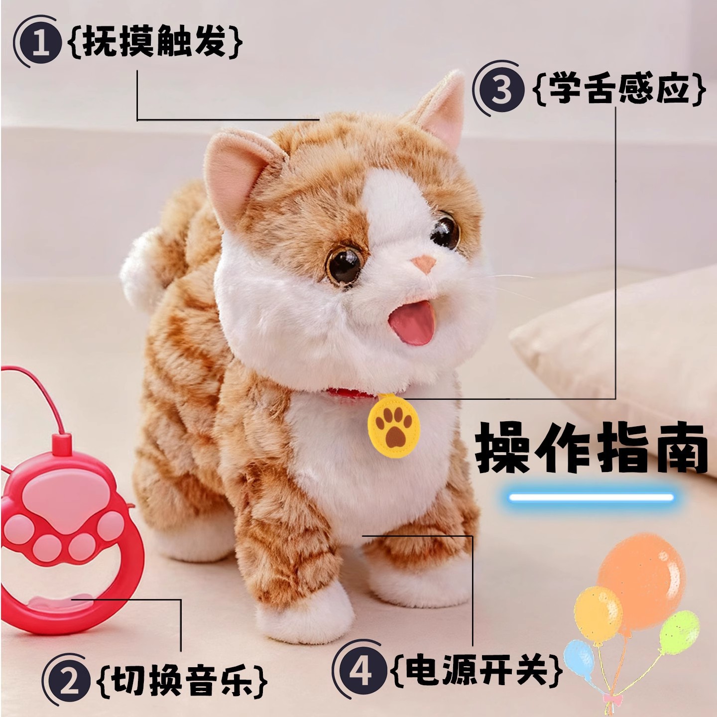 garfield [usb lithium battery rechargeable version] leash remote control + learn to speak + touch one's head interaction + tongue licking