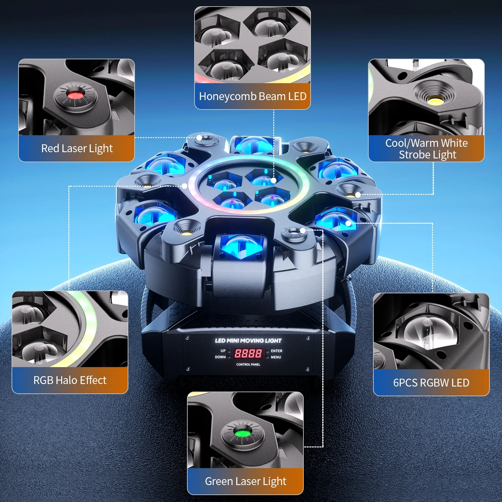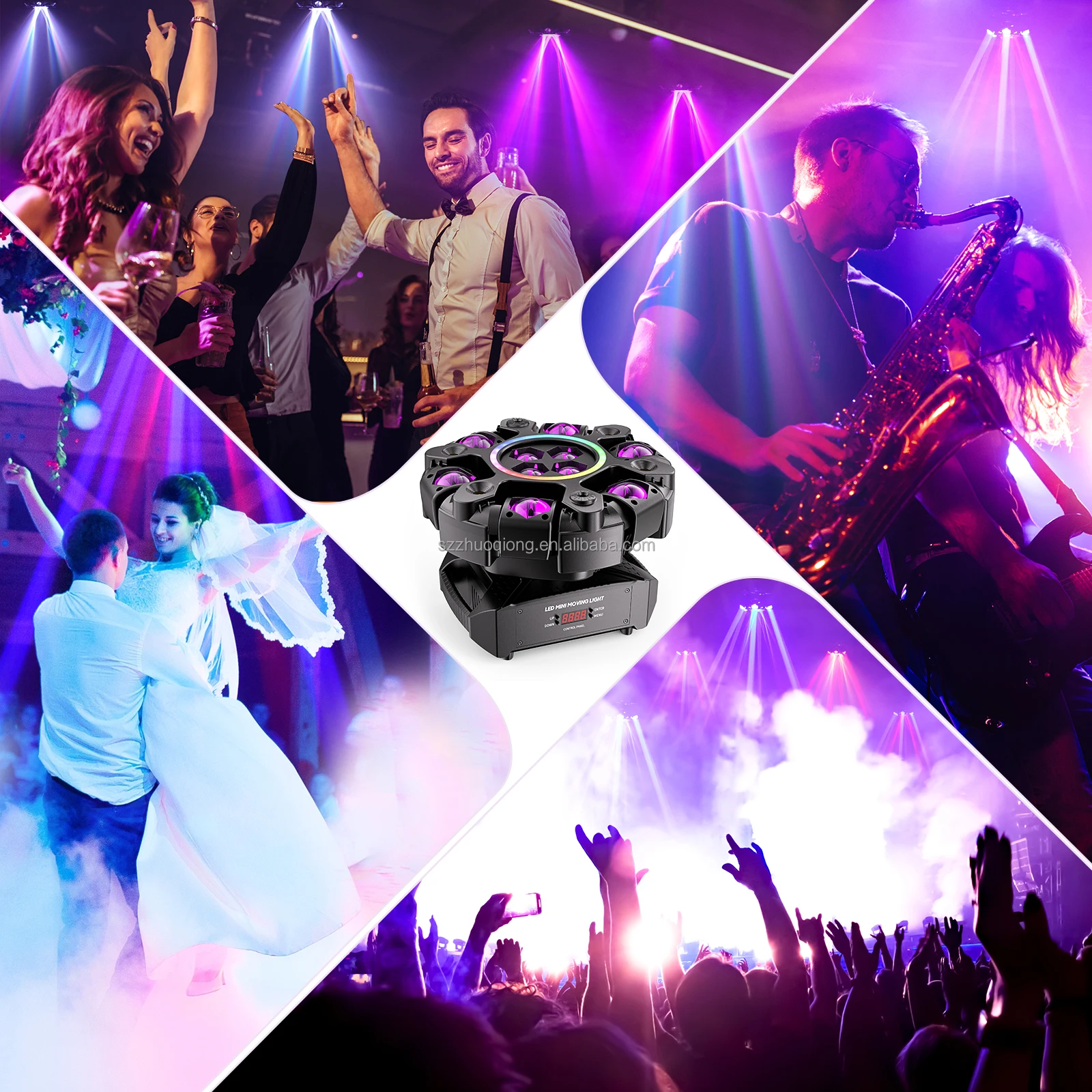 150W LED RGBW Six Arm Laser Beam Moving Head Light Stage Effect Strobe Lighting DMX for Disco DJ Bar Party