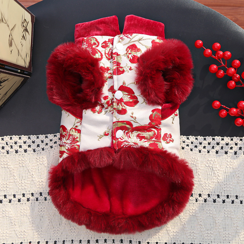 new chinese style rich flower hairless pet fleece-lined dog autumn and winter clothes clothing supplies foreign trade wholesale