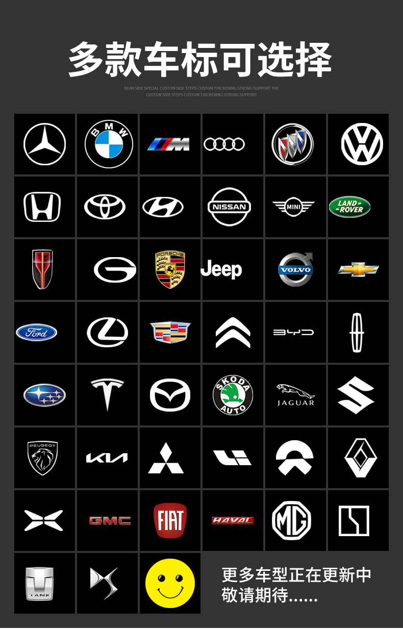 Multiple car models with multiple logos. If you need logos for other car models, please contact our customer service.