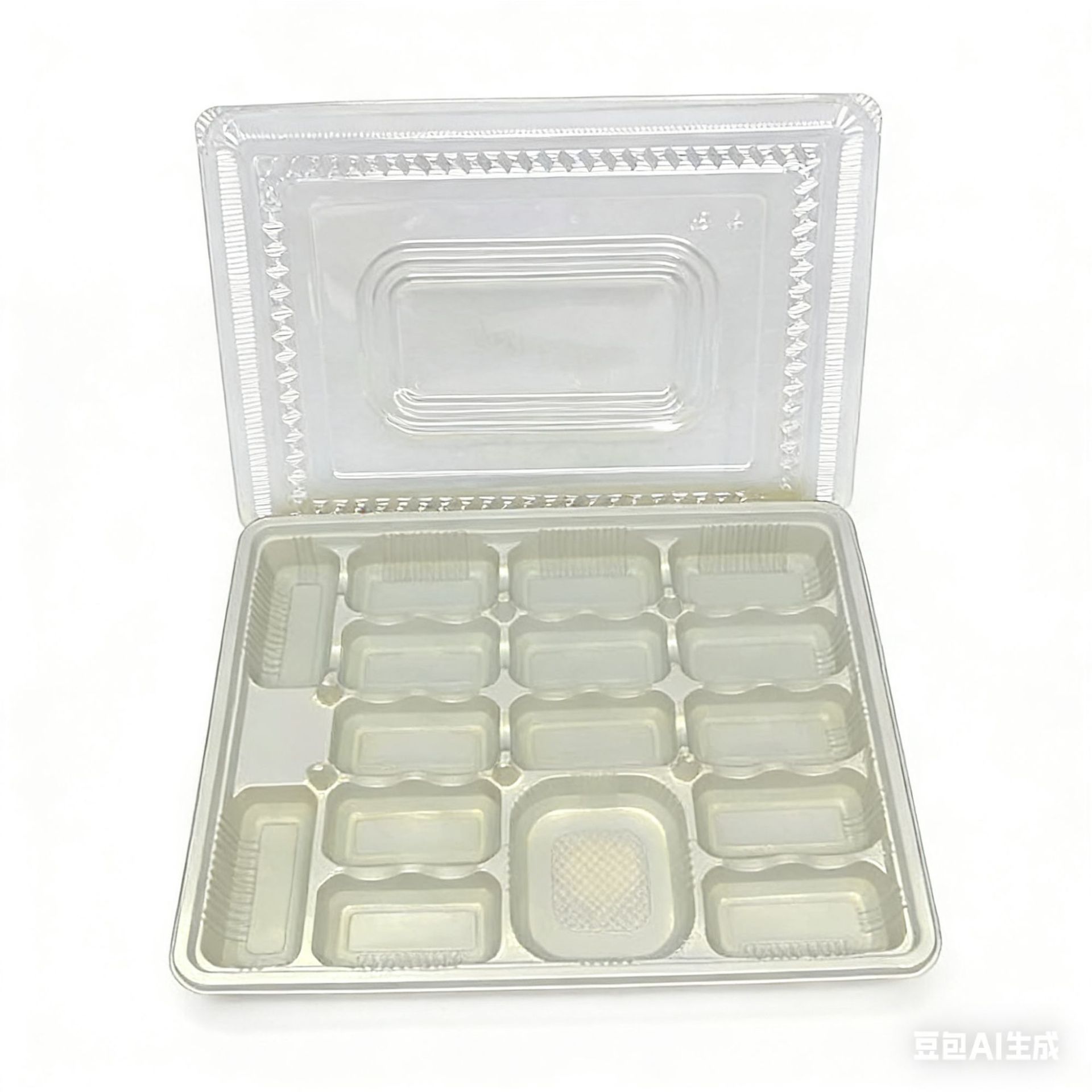 ITEM NO.【Product Model Number】: RS-1805 (15-cell) NAME【Product Name】: One-time Use Dumpling Box with Lid QTY【Quantity】: 400 Sets "CBM【纸箱体积】:0.083+0.03 Material【Product Material】: PP+OPS Color【Product Color】: 绿白 Weight: 47 grams Packaging【包装方式】:Stacked "W.G【Gross Weight of a Full Container】:19.8kilogramWith the base cap together N.G【Gross Weight of the Full Container】: 18.8 kgJin / bottom cover together SIZE【Product Size】: Length 28*Width 21* Height 3.2centimeter