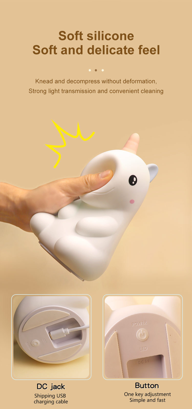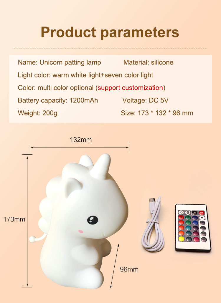 cross-border hot unicorn pat small night lamp silicone pat lamp rechargeable sleep bedside lamp table lamp ambience light