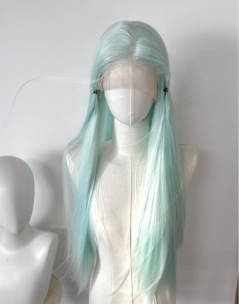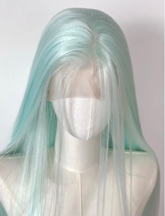 mint green wig women's long hair natural full-head wig style women's team can be tied twist braid long straight hair universal wig sheath