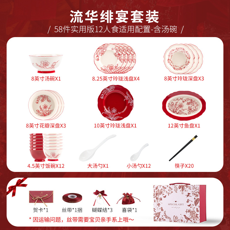 [zhenyi yunjin gift box] liuhua banquet-12 people 58 pieces with soup bowl (including accessories)