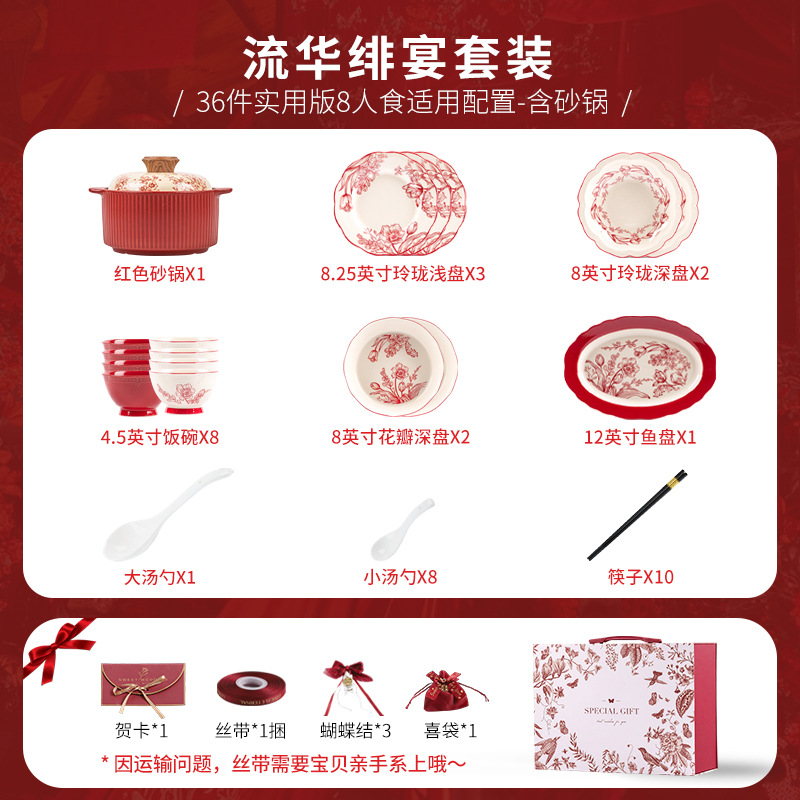 [zhenyi yunjin gift box] liuhua banquet-8 people 36 pieces with casserole (including accessories)