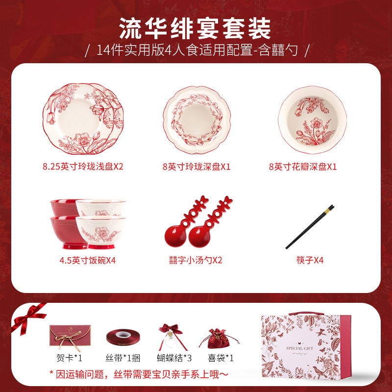 [zhenyi yunjin gift box] liuhua banquet-4 people 14 pieces with spoon (including accessories)