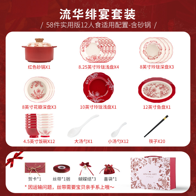 [zhenyi yunjin gift box] liuhua banquet-12 people 58 pieces with casserole (including accessories)