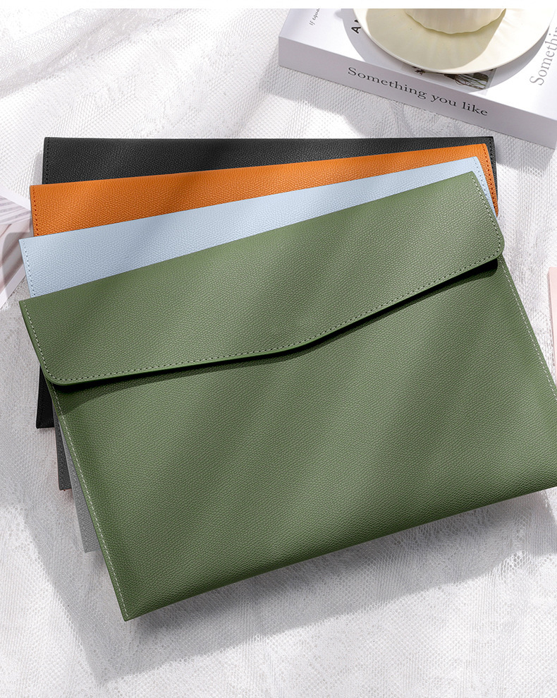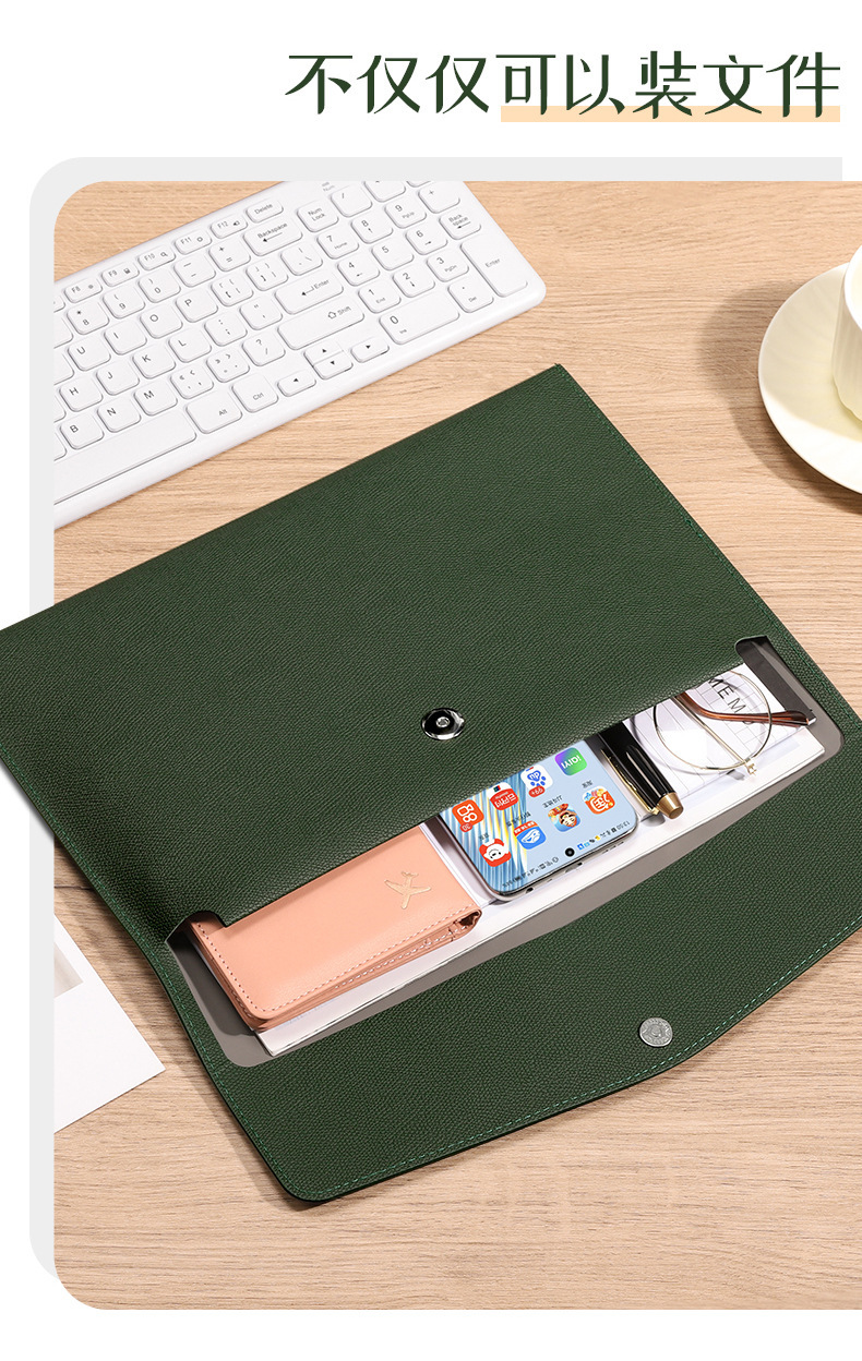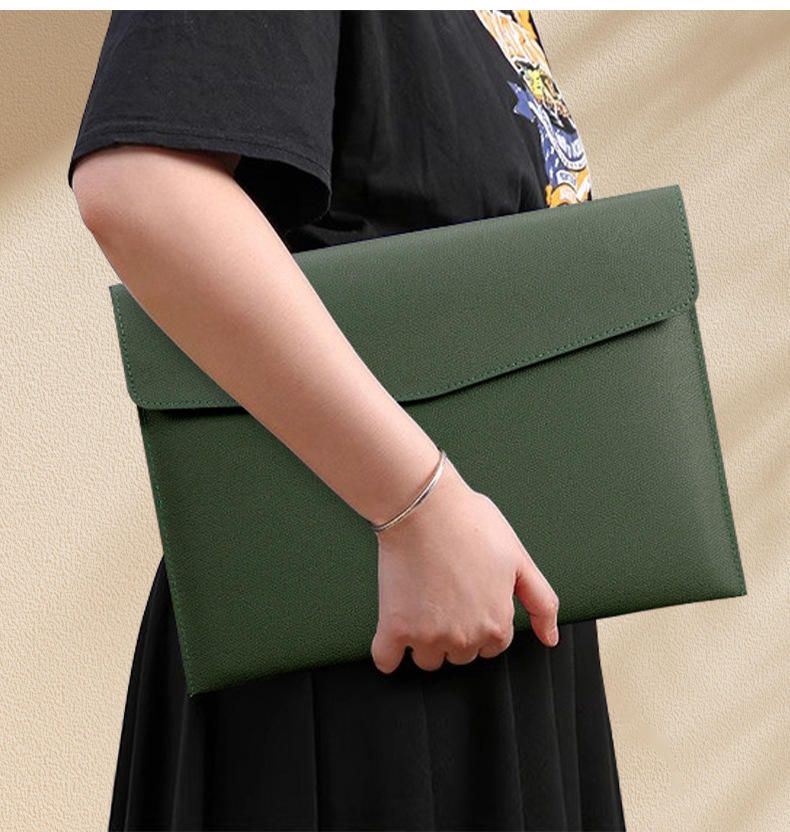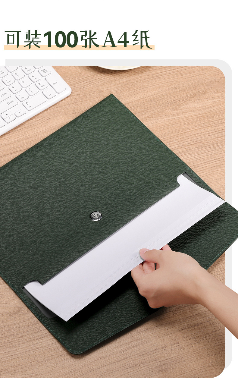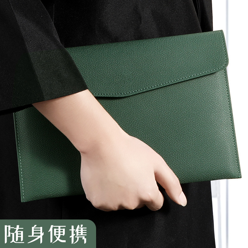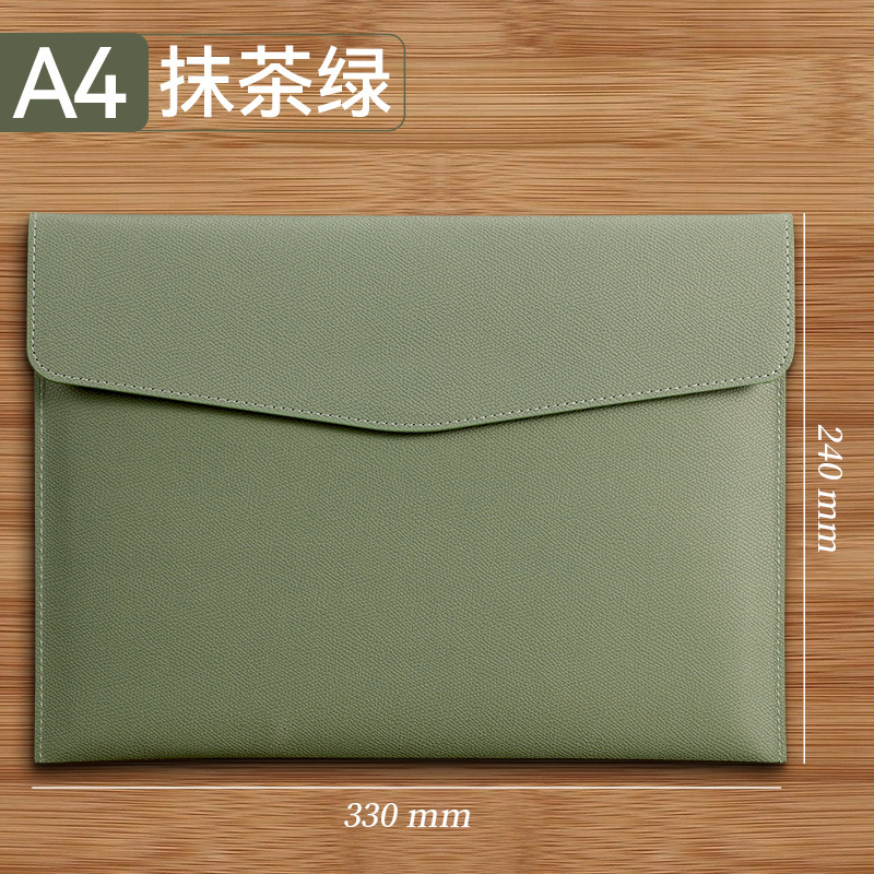a4-bean green -- soft leather file bag [can hold about 100 sheets of a4 paper]]