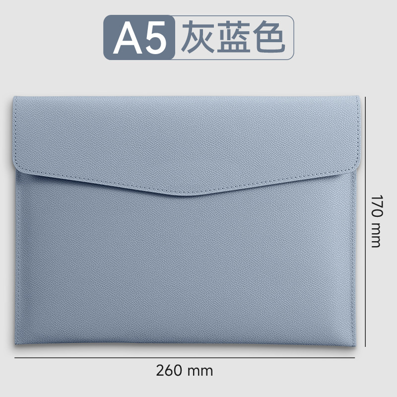a4-gray blue-soft leather file bag [can hold about 100 sheets of a4 paper]]