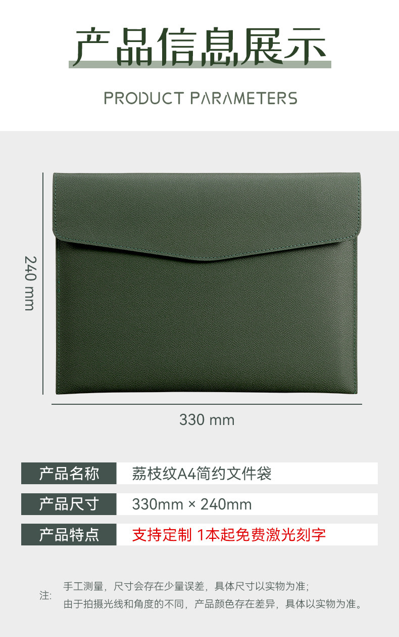 a5-file bag-dark green [lychee pattern]]