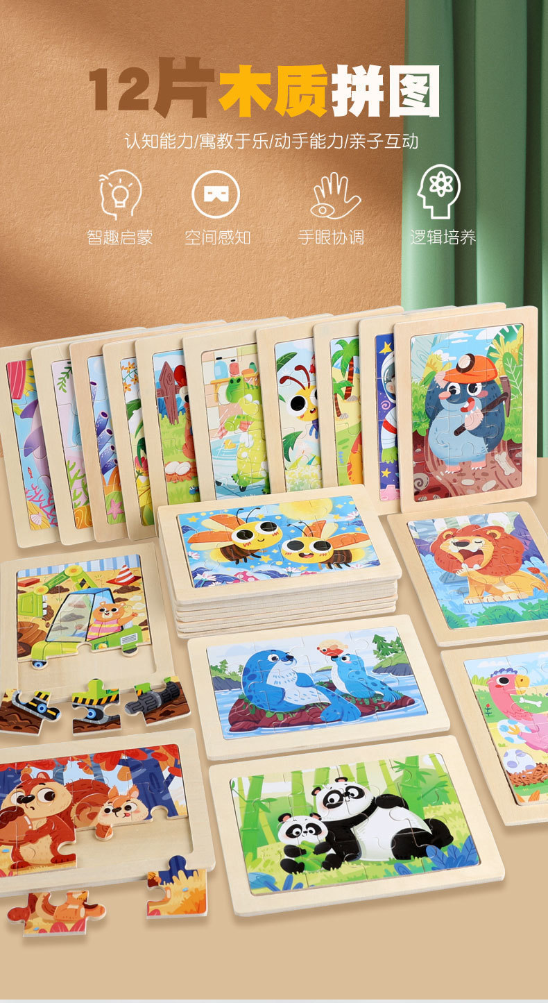 Product Name: Cross-border New Style 12-Piece Wooden Puzzle