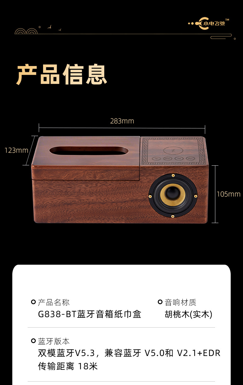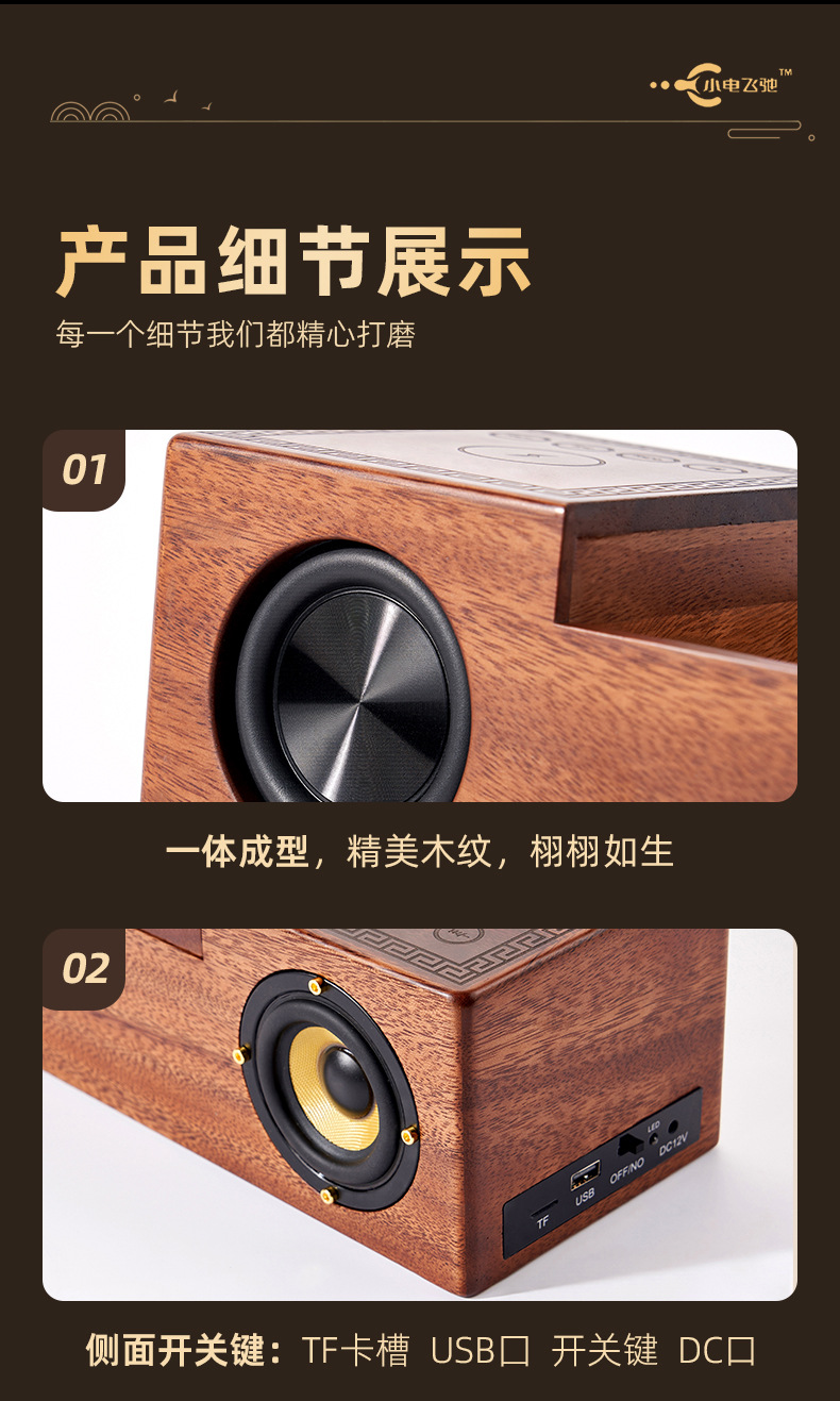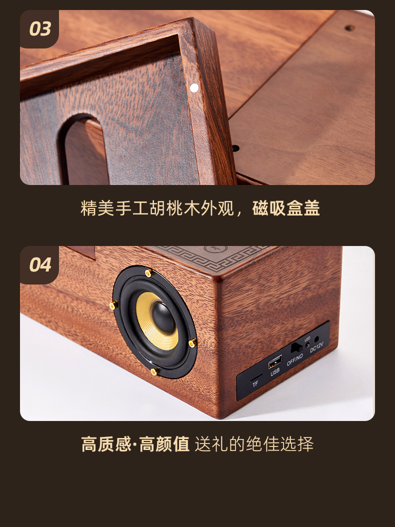 new bluetooth speaker wireless charger retro solid wood walnut u disk tf card wireless bluetooth creative gift factory