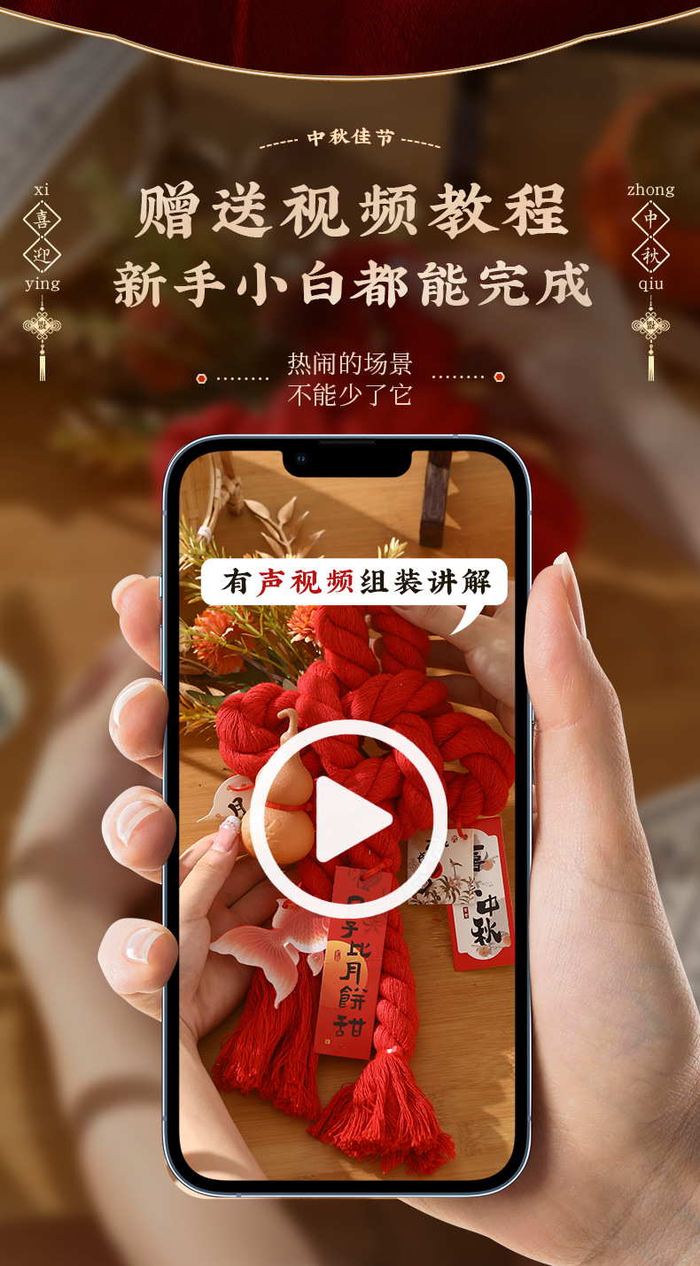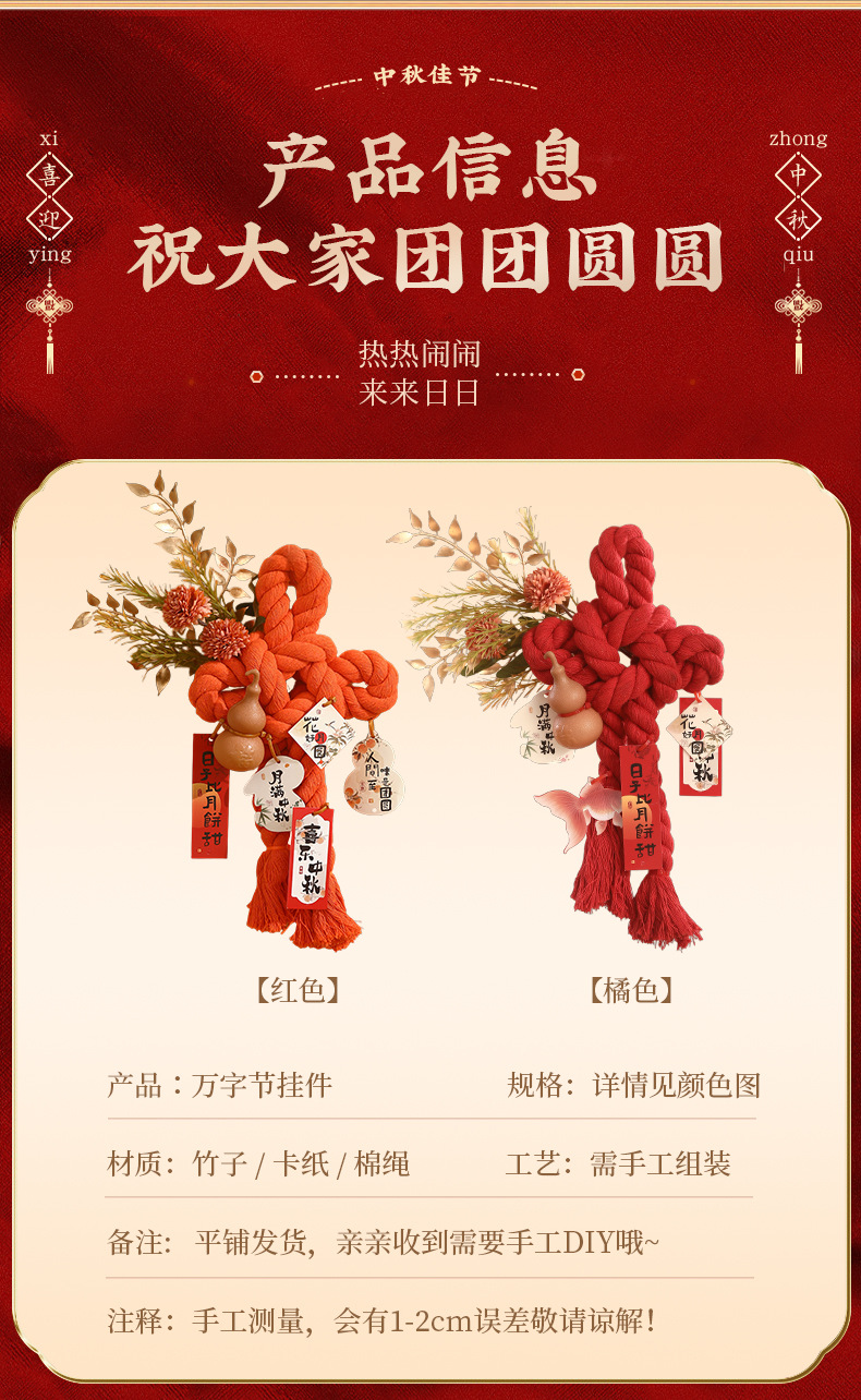 (happy mid-autumn festival) large red ten-character knot [simple diy for ornaments]]