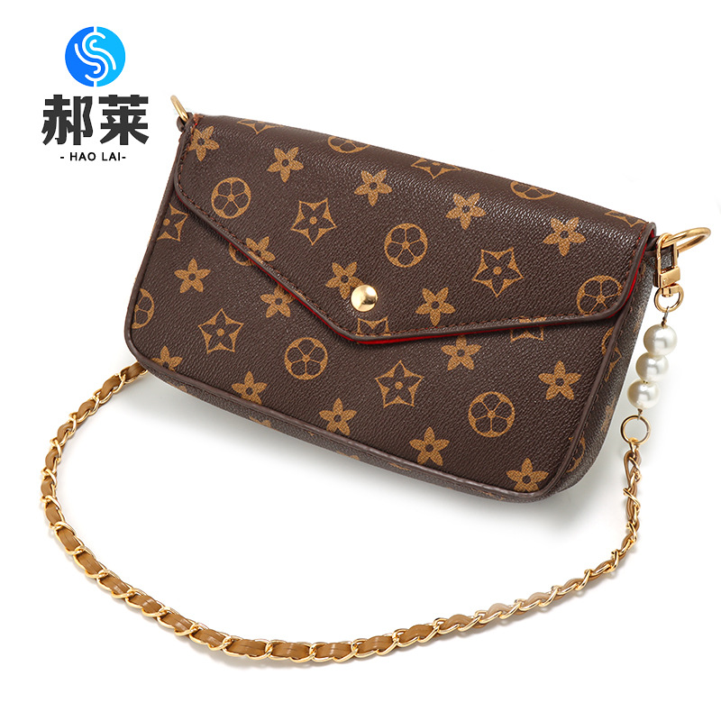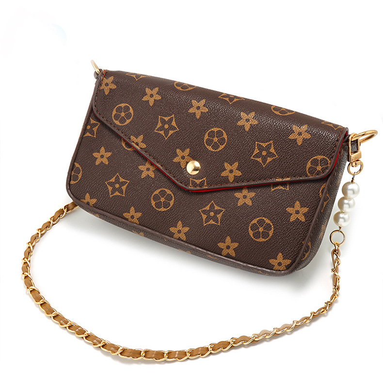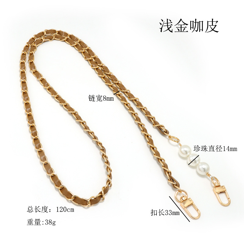 [with coffee color gasket + spring coil] aluminum zipper light gold coffee leather +3 pearls