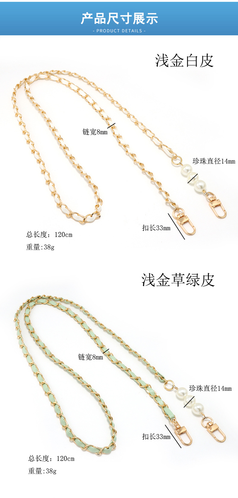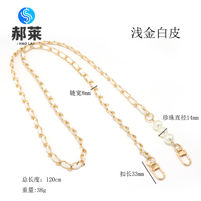 [with white gasket + spring coil] aluminum zipper light gold white leather +3 pearls