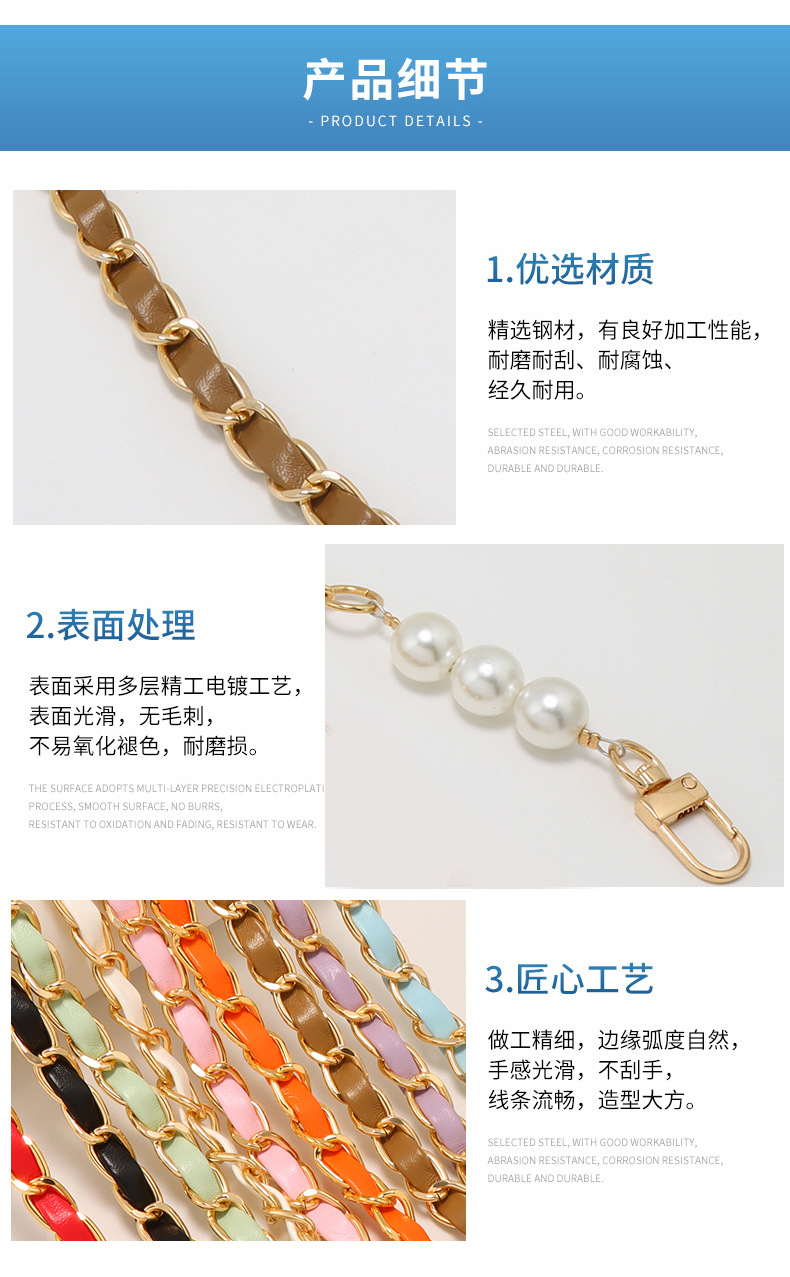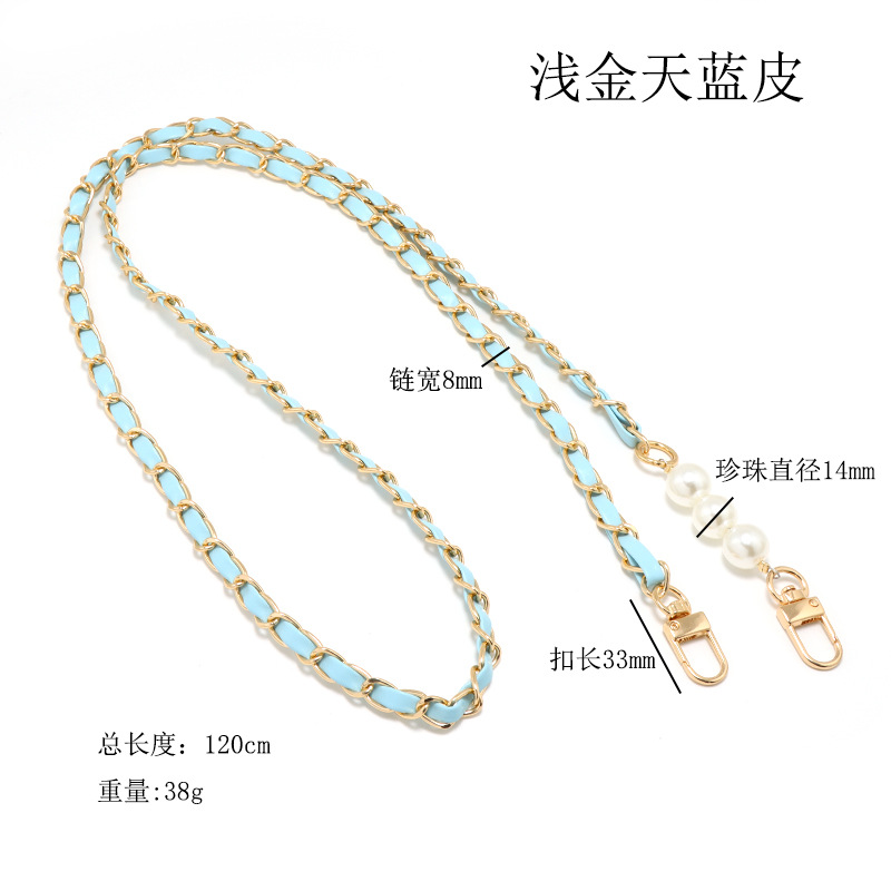 aluminum zipper light golden sky blue leather +3 pearls
