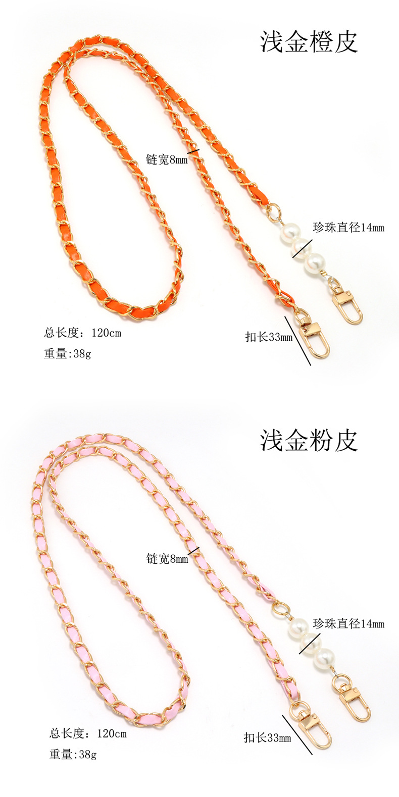 [with orange gasket + spring coil] aluminum zipper light gold orange leather +3 pearls
