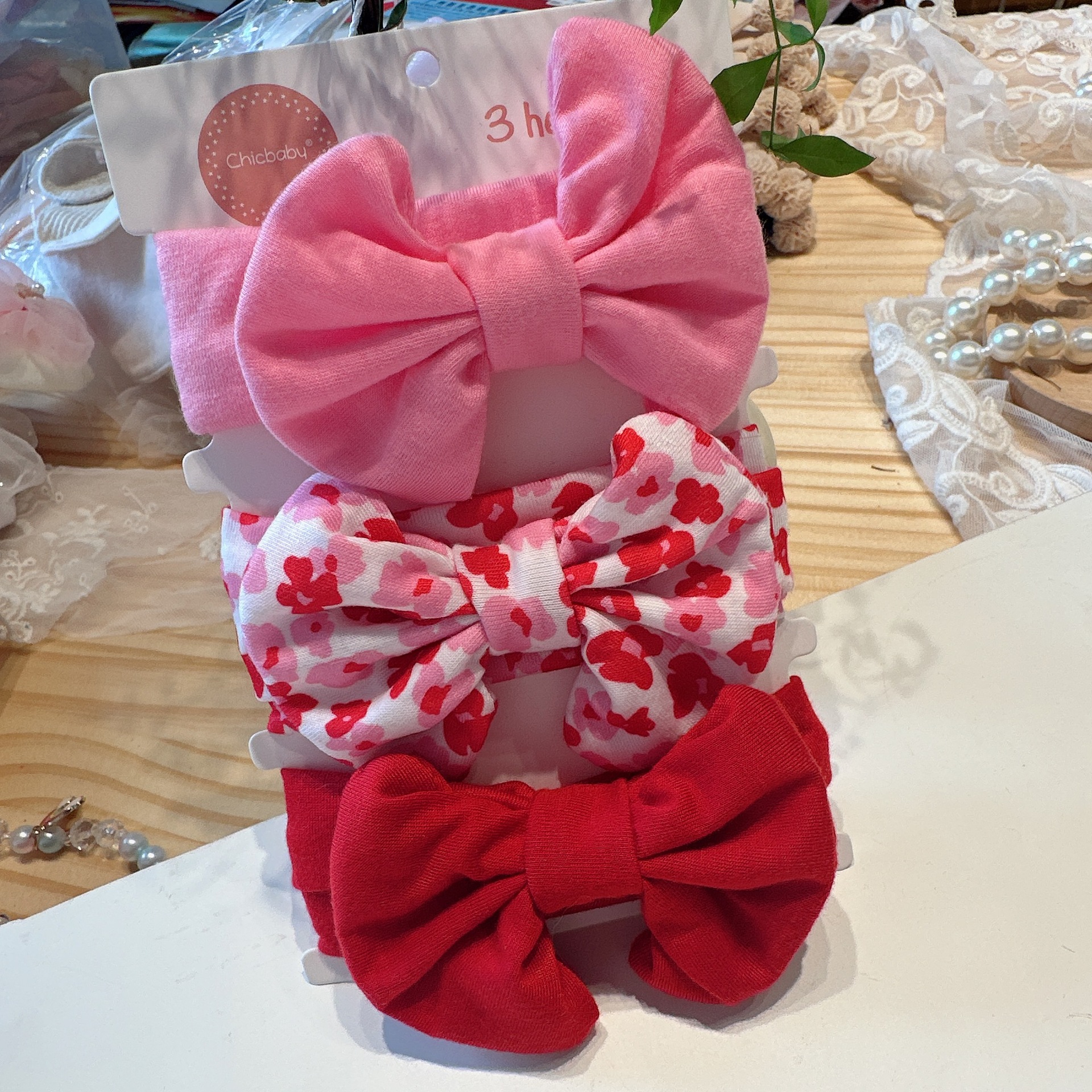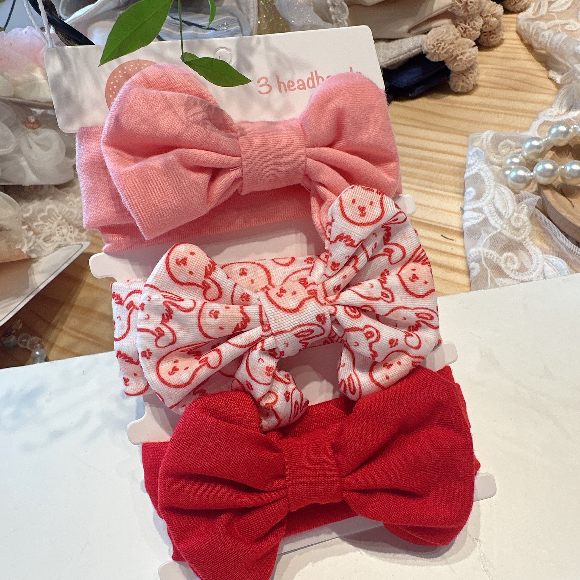 8661 leopard print red dot imitation cotton hair band three-piece set