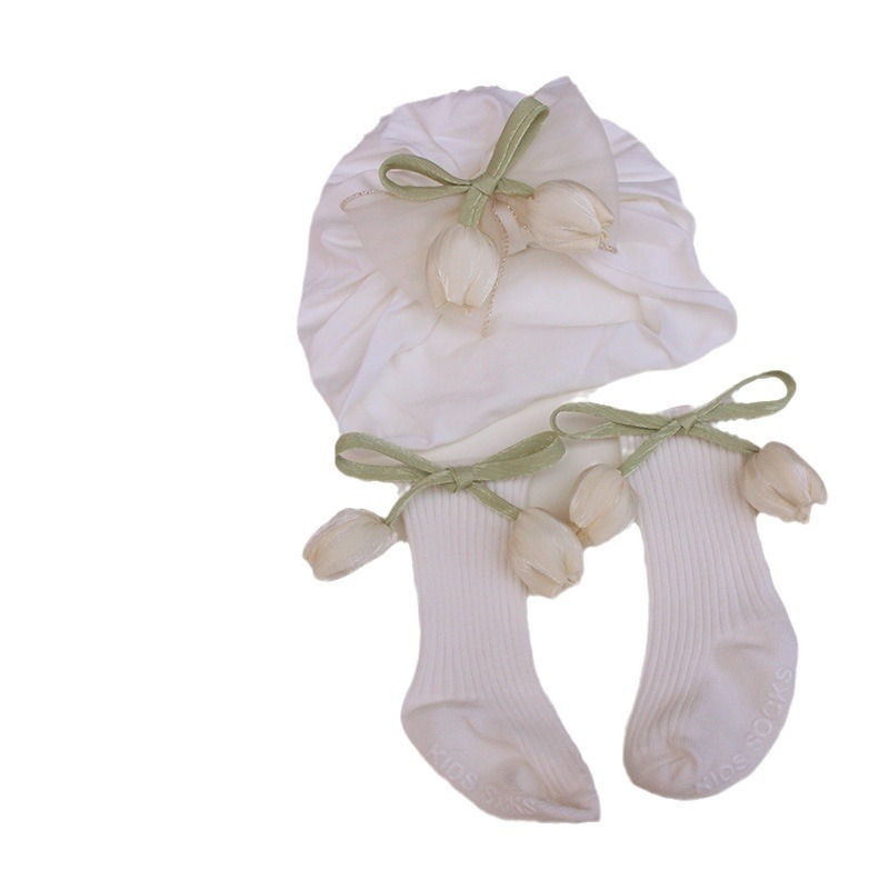 pink tulip hat + milky white socks