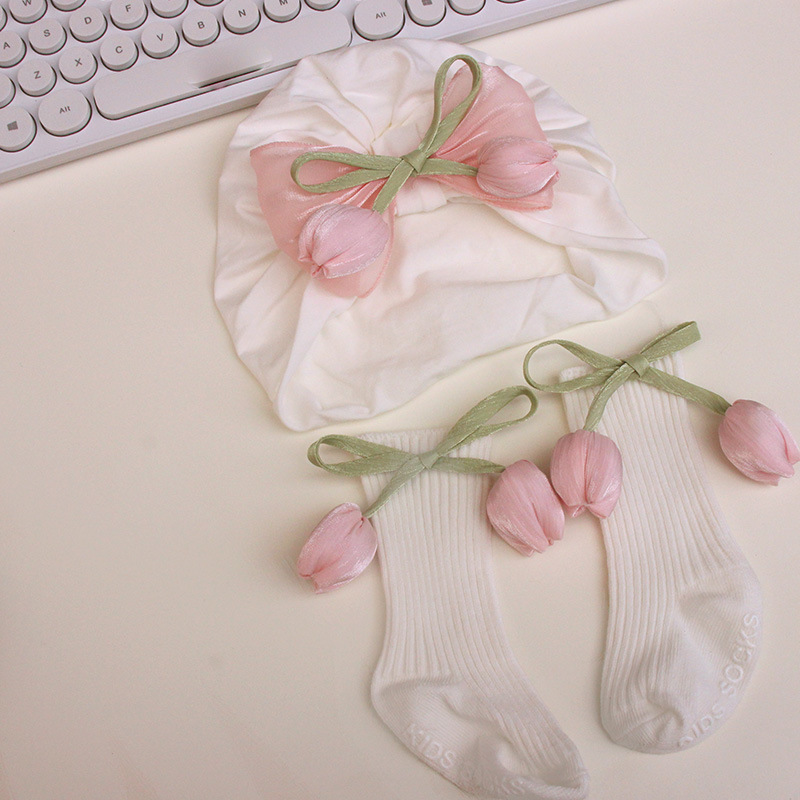 white pink tulip hat + white socks