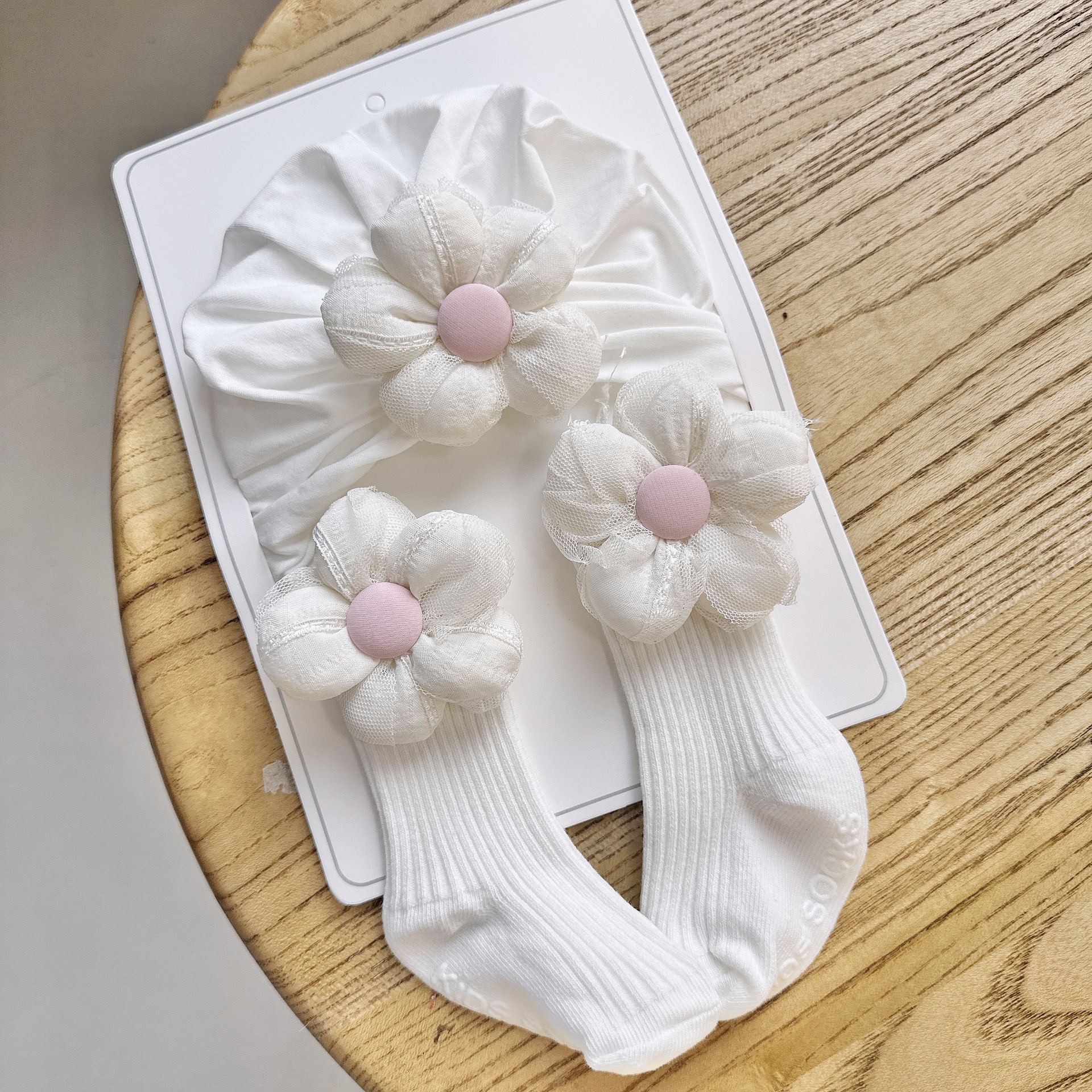 5 white fairy flower indian hat + socks