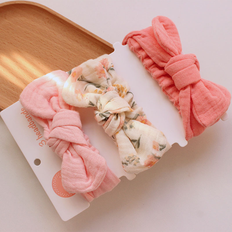 pink heart gauze hair band set