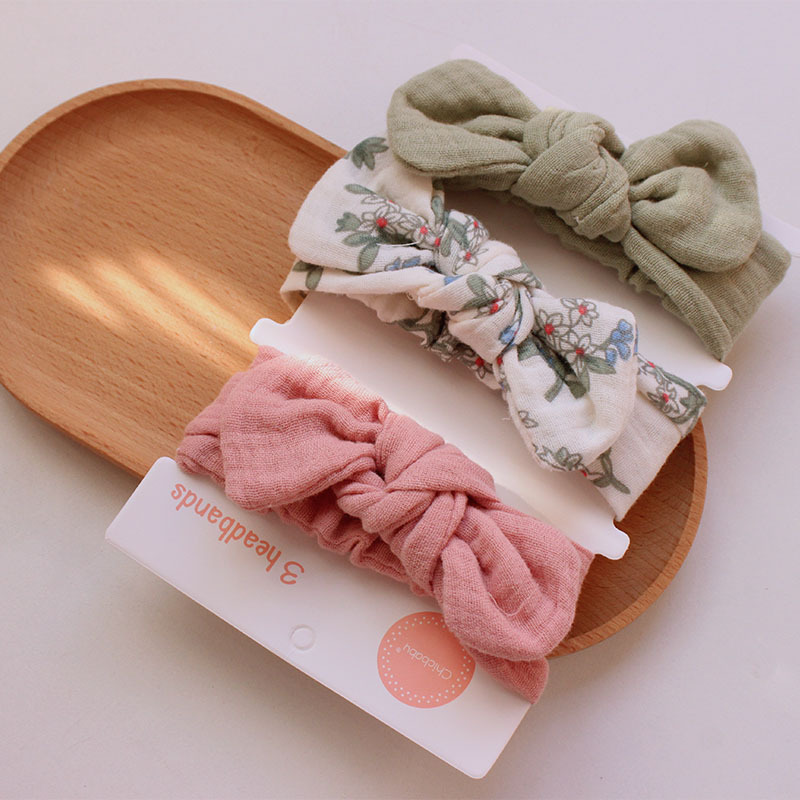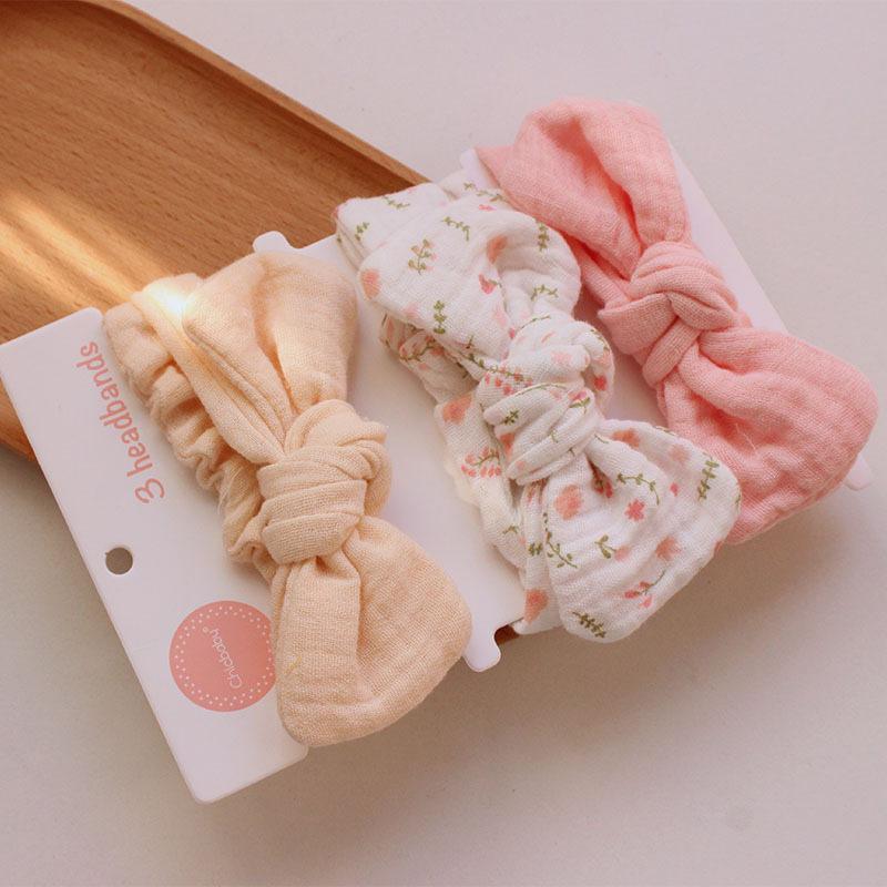 rice bottom flower gauze hair band set