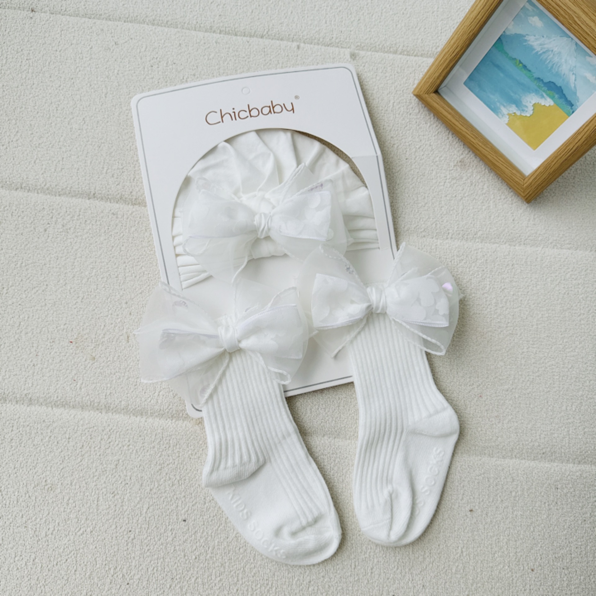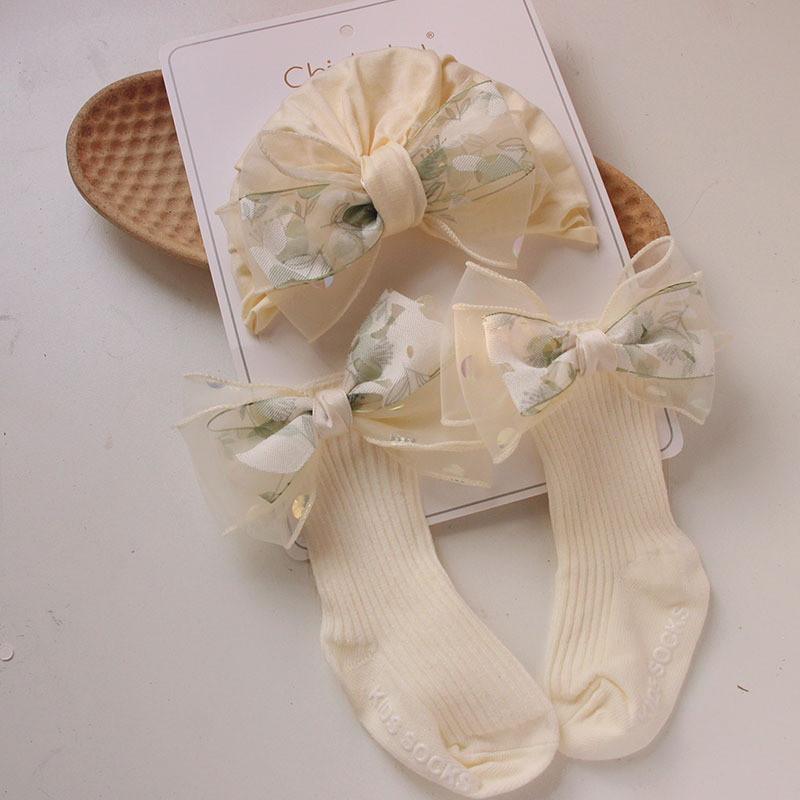 50 milky white beige magic feather knot cap + long socks