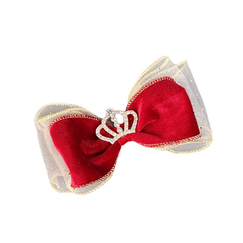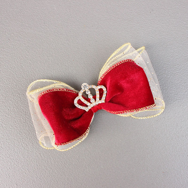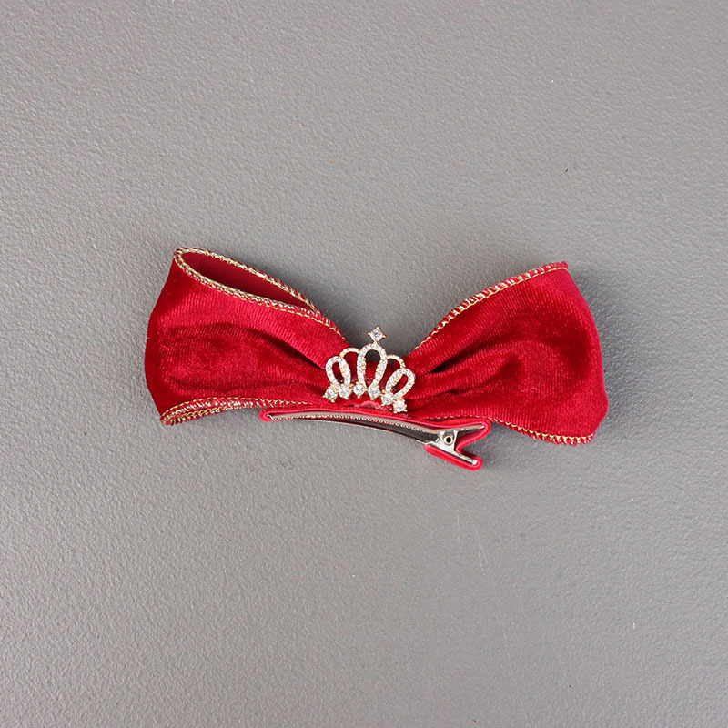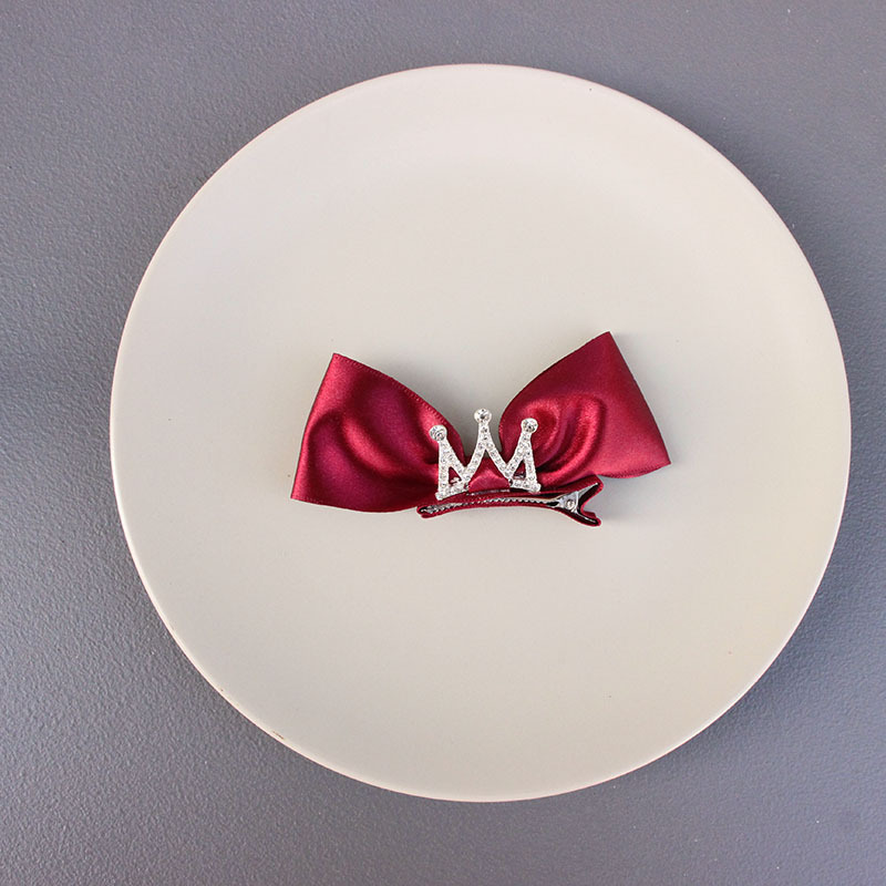 three-dimensional wine red crown bow barrettes pieces