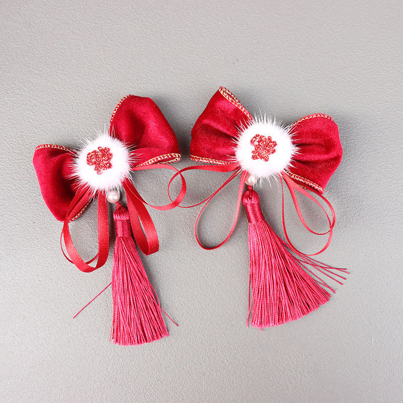 fu character tassel bow barrettes pieces