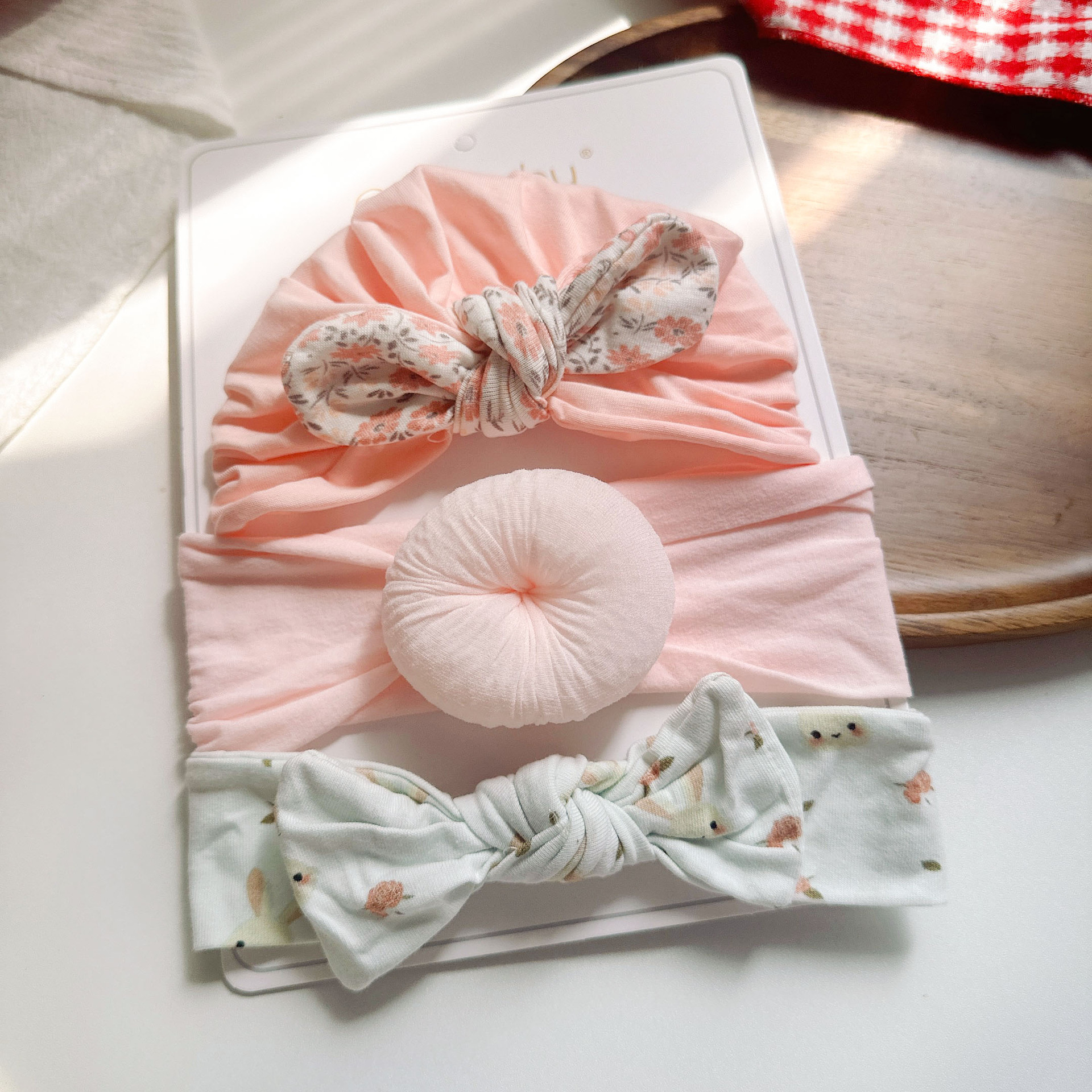 nude pink donut 24 floral hat set